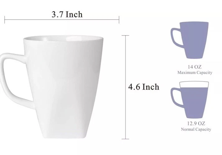 This Ceramic Coffee Mugs Set includes 6 medium-sized coffee cups with a 12 oz capacity, suitable for both hot and cold drinks. Made of durable porcelain with a modern square shape and clear glaze finish, these mugs are freezer, microwave, oven, and dishwasher safe. The pure white color and loving family theme make them ideal for daily use at home, providing a stylish and practical addition to your kitchen and dining collection.
