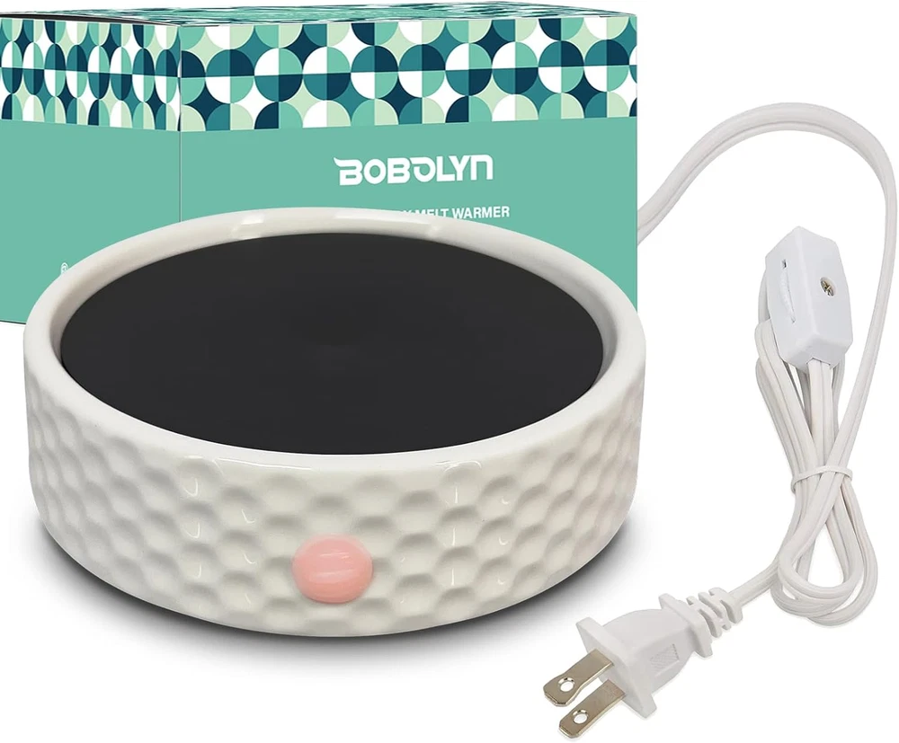 Store New Arrivals Add to Favorite View Feedback Contact Electric Large Candle Warmer Plate - Ceramic Candle Wax Warmers for Jar Candles, Coffee Mug Warmer, Cup Warmers for Home Office, Aromatherapy Fragrance and Heating Beverage, Milk, Tea, Hot Chocolate Description Item model number CANDLEWARMER02 Style A-White Honeycomb Product Dimensions 5.7"L x 5.7"W x 3.1"H Power Source Corded Electric Color White Honeycomb Wattage 20 watts Material Ceramic Country of Origin China Item Weight 12.7 ounces Number of Trays 1 Voltage 120 Volts Brand Bobolyn Manufacturer Bobolyn Simple and elegant design Candle Warmer: Note:This warmer plate is for 6-8 oz candle jars and takes about 5 hours to fully melt the wax. If the jar is larger than 8 oz, it will need more time to melt. Worried about fire hazards caused by unregulated candle jars? Tired of repeated changing bulbs for ordinary candle wax warmer? Try this electric candle warmer plate! Our ceramic candle warmer plate for jar candles has compact size and light weight, easy to carry during travel, safe and convenient for usage and save cleaning time and storage space. Keep coffee mug/ tea cup warm: This coffee mug warmer is perfect for keeping your hot beverage warm. This tea cup warmer has a 3.97 inch heating plate to keep your coffee, tea, hot chocolate, and other beverages at the perfect temperature! Take this innovative candle wax melts warmer plate with you in your leisure time or office work. Please check your coffee mug/ tea cup/ candle jars dimension before usage. Functional and versatile Candle Plate: Use candle jar with/without wick directly on the iron heating area of this candle wax warmer plate; Use scented wax cubes or essential oils on a removable ceramic dish(not included) or a wax warmer liner(not included), and there will be no flame, soot, or other pollutants, no safety hazards caused by burning flames. Easy and safe usage: Just plug the wax melt warmer plate in, put the candle jar on the candle plate, then turn on the switch. Everything done! Our candle warmers melt candles evenly and slowly, extending their burn time. The scent slowly permeates through the room, convenient for first-time users, very safe for kids, elder and pets. Long lasting and appropriate fragrance for bedroom, bathroom, office, garage, kitchen, basement. Thoughtful gift choice: Our candle jar wax melts warmer plate is the perfect option to express gratitude to your beloved ones and treat yourself. Take this fragrance wax warmer burner plate to show your sincere care and love for them on Mothers' Day, Valentine's Day, anniversary, house-warming, wedding, birthday, party and Christmas. Product Description ABOUT US We offer the best prices around on high quality products. Our E-store includes media such as books, movies, music and games while offering electronics, toys, sporting apparel, clothing, tools, general home, garden items and more. SHIPPING We are always working hard to ensure your package arrives as soon as possible. Please understand that some factors like weather, high postal traffic, and the performance of shipping companies are outside of our control. We offer free shipping to the lower 48 states and ship within 2 business days of payment, usually sooner. We do not accept P.O. Boxes. Please provide a physical address. RETURNS We offer a 30-Day Return Policy on items which you are not completely satisfied with. You have the option for a full-refund or an exchange of the item. No returns are available on items shipped outside of the USA. PAYMENT We accept PayPal. CONTACT US This page content is yet to come Please ad us to your favorite seller and visit again later Thank You CUSTOMER SATISFACTION We try our very best to make sure every customer is completely satisfied. If there's a problem, message us! We're happy to help.