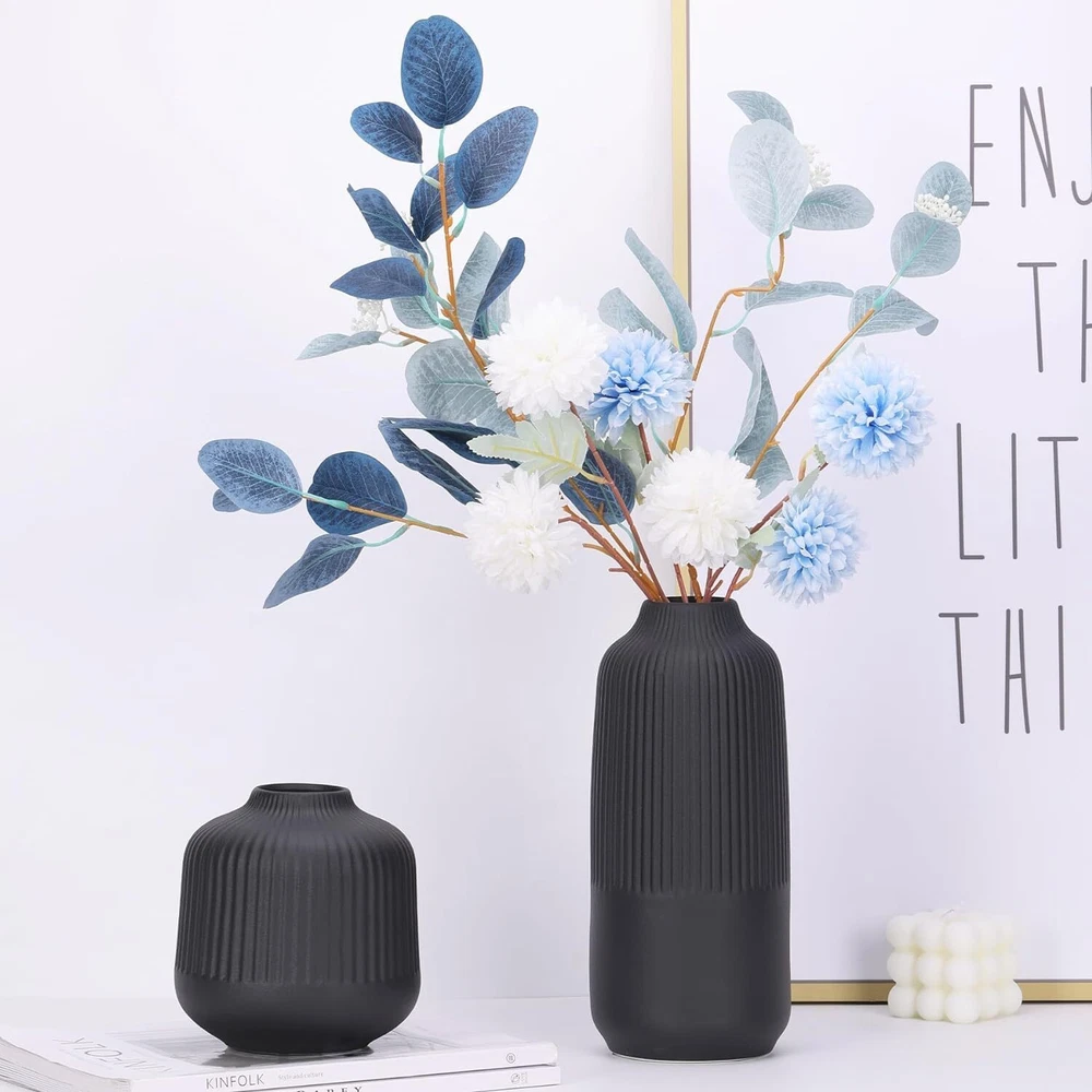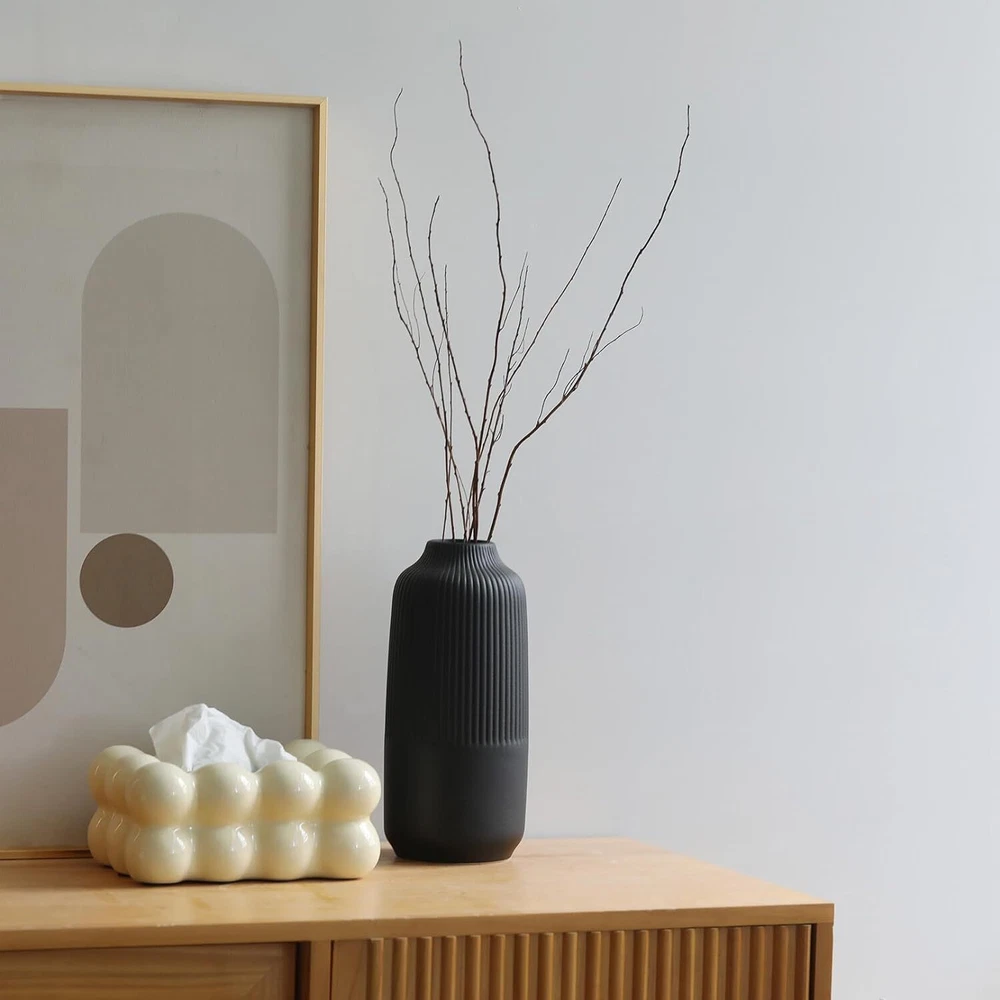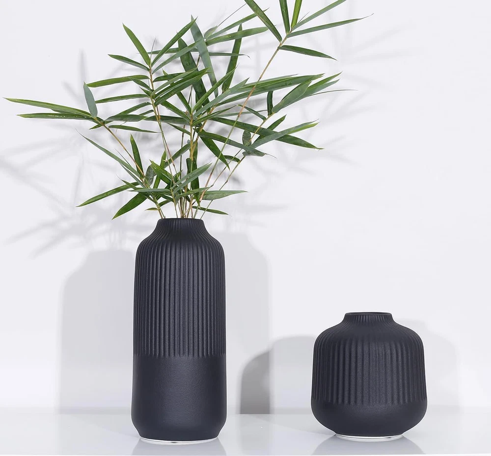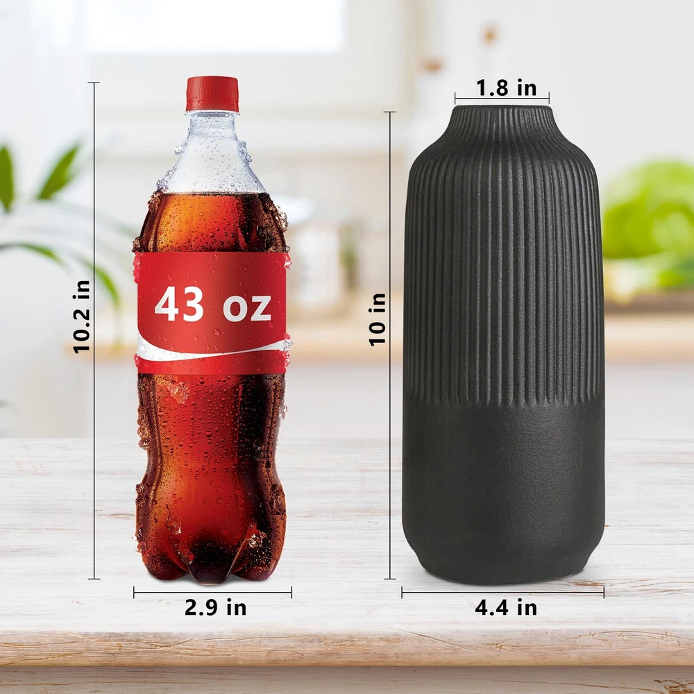 Attractive Ribbed Vase: this home decor vase made of high quality ceramic, it's perfect matte black shade and the etched stripes add a subtle texture. Looks good anywhere, such as living room, bedroom, table, shelf, filled with flowers or pampas grass, adds natural beauty to you space Original Minimalist Vase: designs by combining soft and smooth curves with parallel lines, the matte finish gives it a beautifully sculpted look, so this black vase suitable for all styles: classic, traditional, farmhouse or boho modern decor, create a pretty centerpiece Perfect Size & Idea Gift: this handmade ceramic vase stands 10 inches tall, looks like a piece of art, making it an ideal gift for your family and friends; great gifts for various events such as Birthdays, Valentine's Day, Women's Day, Mother's Day, Christmas, Wedding Well-Crafted & Anti-Scratches: handcrafted from natural ceramic, feels substantial and well-made, promising to stand the test of time. Its wide opening makes it easy to arrange flowers or greenery, while its sturdy base with soft rubber feet ensures stability on any surface Solid Package & Reliable : each vase is securely packed in a sturdy box with polyethylene foam cotton to ensure safe delivery, ready to be wrapped and gifted to a loved ! Please feel free to us if you need any assistance