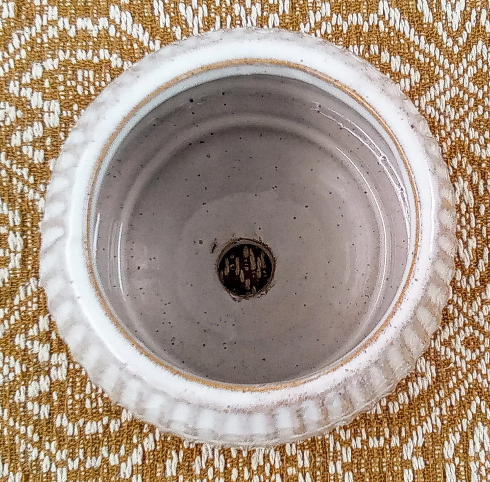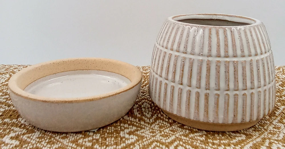 Ceramic Flower or Succulent or Herb Pot & Saucer White with Tan Ridges 3.75"T . Measurements are approximately 3.75" tall. The bottom of the pot 4". The opening of the pot 2.5". Condition is Brand New/Unused. Saucer is not attached to pot for easy cleaning. Hole in bottom of pot for drainage. If you have any questions, please contact us. Shipped USPS. We ship vintage and new items. We carefully pack with care to ensure the safety of each item. We do not pass these packaging costs onto the buyer. Furthermore, we do not charge any extra fees for handling. We only charge for the USPS shipping charge. We do monitor shipping prices frequently. In most cases, we do find the USPS to be the most inexpensive way to ship our products. We try to be as detailed as we possibly can in our photos and descriptions. We try to mention any imperfections in our vintage items. We may miss things from time to time or our photos may not be enough clarification for you to see the item. We will be glad to answer any questions or send you more photos. If at any time, you have a question or issue, please contact us immediately. We will contact you within 24 hours. We want to make sure you have a good experience in purchasing any of the products. If you are happy with your purchase, please leave feedback. It will help us to grow and offer more great items in our store! Thank you for your interest in one of the many products in our eBay store! Renee Burly Owl Lady