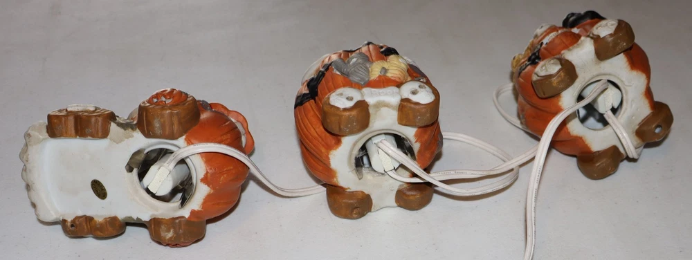 This Ceramic Halloween Jack-O-Lantern 3 Piece Train Set is a festive addition to any Halloween decor. Made of high-quality ceramic, these train pieces feature a spooky Jack-O-Lantern design that will delight collectors and fans of holiday memorabilia. The set includes a light cord for added sparkle, making it a charming display for the Halloween season. Perfect for those who appreciate seasonal collectibles, this train set is sure to bring a touch of whimsy to any home during the holiday.