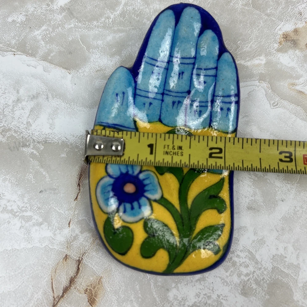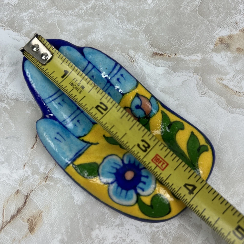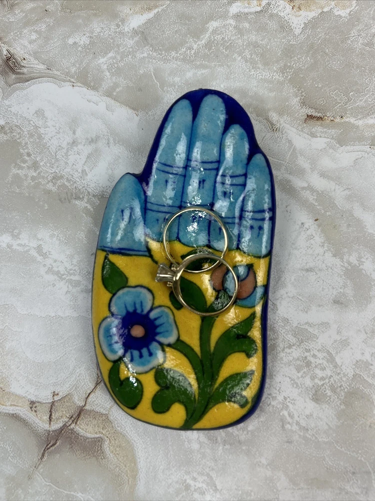 This vintage, hand-painted ceramic incense burner and ring dish is a beautiful addition to any home decor. With a bright floral design inspired by India and Mexico, this small, 4-inch item is perfect for use in bathrooms and other small rooms. It is handmade and made of high-quality ceramic material. The burner features a deodorizer and is intended for use in aromatherapy, with a volume of 100 ml and burning time of up to 8 years. The item is labeled with 100% concentrated ingredients and can help alleviate aches and pains. It comes from the U.S. product line of Carlos Morgan and is finished with a glossy look. The product is perfect for adults who love solid patterns and want to add a touch of home fragrance to their space.