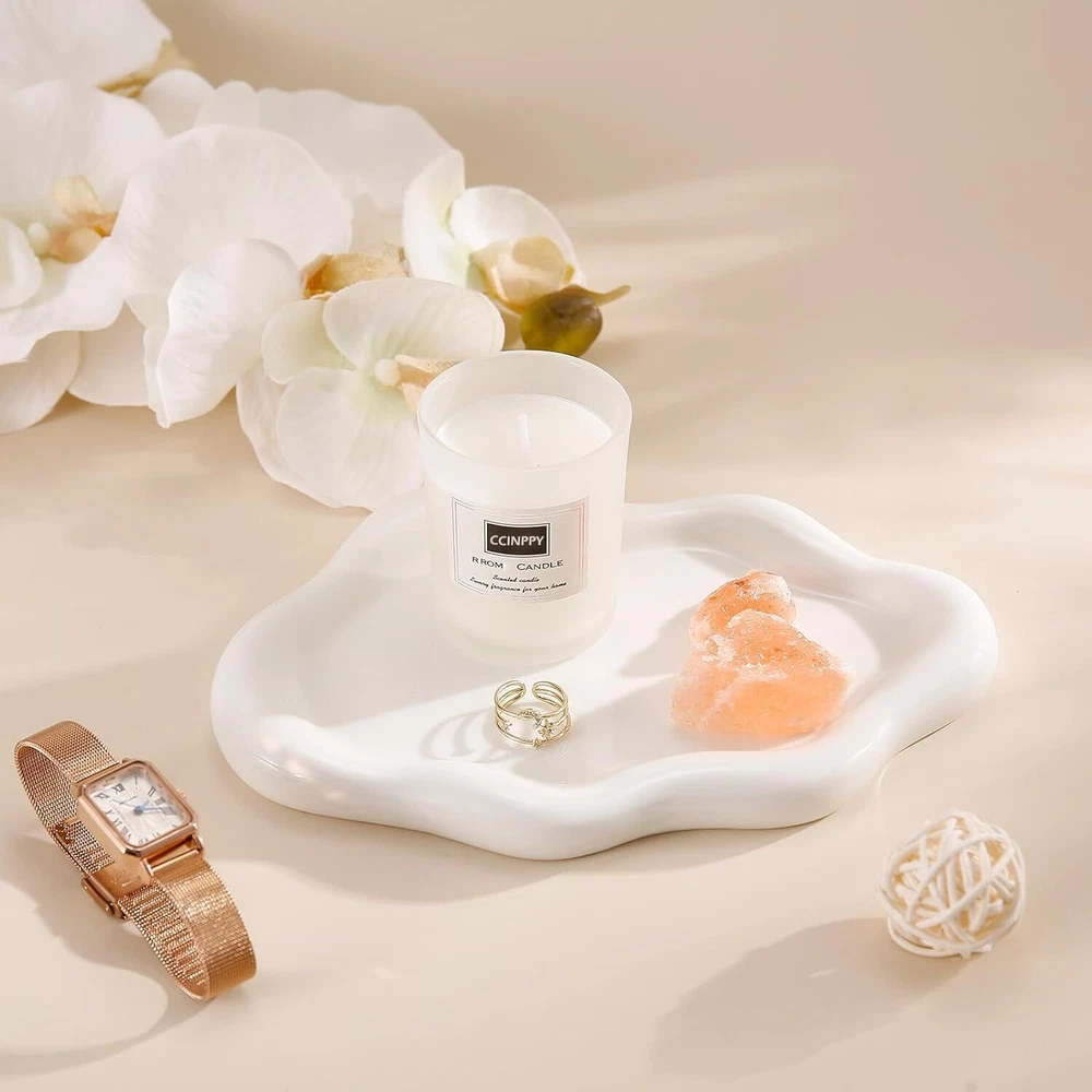 Ceramic Jewelry Tray Trinket Dish, Decorative Cloud Vanity Key for White Product Details Brand: CCINPPY Color: White Material: Ceramic Product Dimensions: 7.7"L x 5.3"W x 0.6"H Shape: Cloud Versatile Use: This catch all tray is ideal for storing jewelry, bracelets, trinkets, perfumes, rings, earrings, keys, crystals, and other daily essentials without taking up too much room. A simple and elegant way to hold your jewelry Well Made: Compact size: 7.7 inches L, 5.3 inches W, 0.6 inches H. The trinket dish is made of quality ceramic, sturdy and heavy. The whole surface is well polished, smooth, seamless, and scratch-resistant, easy to wipe down and clean. Well packed with protective foam and box Eye catching Room Decor: The multi scene use of this jewelry tray makes it perfect for various purposes, such as a perfume tray for your dresser, a key tray for your entryway table, a ring holder for your nightstand, or just as a room decor aesthetic for anywhere Perfect Gift: This trendy ceramic jewelry plate is a must have for anyone who wants to add a touch of elegance to their home. A great gift for women, mothers and friends, on birthdays, Mother's Day, Christmas, Thanksgiving Day, and housewarming