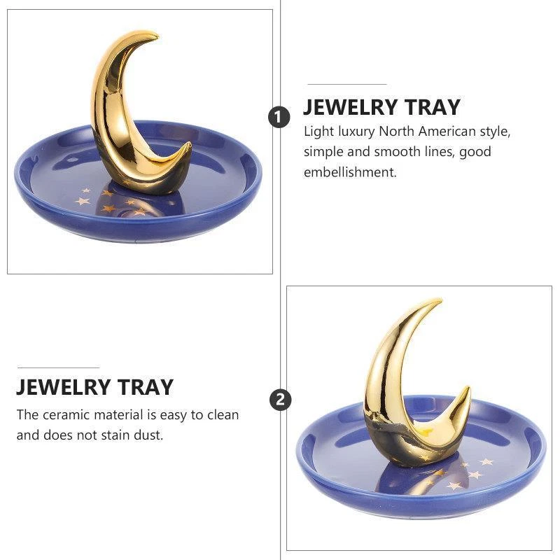 Free and fast shipping , shipping take up 1-7 Business Days 30 Day Return Accepted EASY PAYMENT via PayPal, Credit Card, PayPal Credit, Google Pay... Tray Jewelry Dish Moon Organizer Ceramic Necklace Stackable Small Multicolor Description This jewelry dish is made of ceramic with excellent craftsmanship, designed with delicate golden moon pattern. This is a exquisite trinket dish. Made from porcelain, this plate is comfortable to use and hold. Perfect for storing or display ring necklace and other jewelry. Features - Material: Ceramic. - Crafted from great quality ceramic, stylish and delicate. - Hold your earring, necklace, bracelet, rings, hair band easily. - Very and multifunctional that can be a decoration on your dresser or a snack plate for party. - Affordable gift for wedding, engagement, Valentines, anniversary, birthday, Christmas or Mother's day. - You can put jewelry stands anywhere, like bathroom and bedroom, or displayed in store as eye-catching decoration. 1 x jewelry tray REVIEWS The product came very well packaged. I'm very happy. thank you for everything. Seller strongly recommended. This is great! I definitely recommend! Product looks amazing Delivery was fast. Excellent seller, great communication. I advise everyone to buy it!