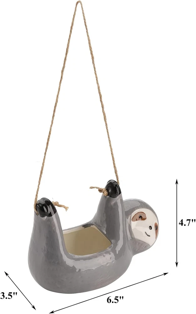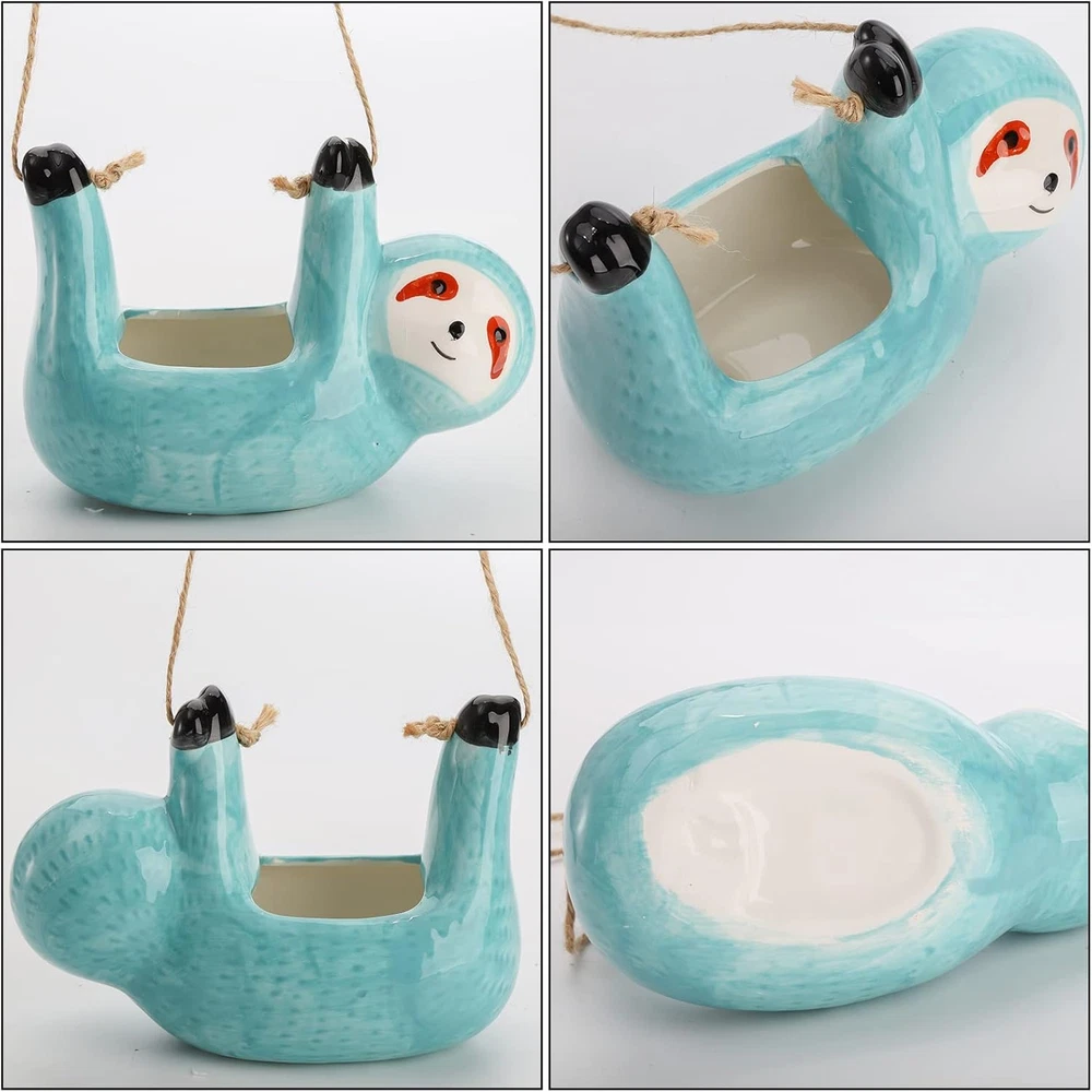 Ceramic Sloth Planters, 2 Pack, Premium Hanging Planters, Cactus Flower Pot New Cute Sloth Planters: Set of 2 handmade ceramic planters in blue and gray colors with etched detailing and twine for hanging. Premium Quality: Made from premium ceramics, these sturdy and durable planters do not fade, deform or paint by hand and are baked in high-temperature environments. Versatile Uses: Can be used to grow plants, store stationery, makeup brushes or kitchen utensils. Ideal for hanging in bedrooms, kitchens, balconies, gardens or offices. Charming Decor: The sloth planter is like a little hammock for your plants and brings great vibes and happiness wherever it goes. Unique Gift: An adaptable and thoughtful gift for parents, friends, gardeners or plant enthusiasts. Suitable for Christmas, birthdays, anniversaries and other special occasions. Copyright: Sloth Hanging Planter by Okllen - VA0002288789 3.5 inches x 6.5 inches x 4.7 inches. Weight: 0.0 grams Style Modern, Contemporary Item Dimensions 6.5 x 3.5 x 4.7 inches Pattern Solid Material Type Ceramic Theme Animals Finish Types Painted Subject Character Sloth Number of Pieces 2 Material Ceramic Additional Features Durable Included Components 2 Ceramic Sloth Planters Plant or Animal Product Type bonsái, flores, suculenta, hierbas Special Feature Durable Planter Form Plant Pot Number of Levels 1 Mounting Type Hanging,Wall Mount Color Blue,gray Item Dimensions D x W x H 6.5"D x 3.5"W x 4.7"H Indoor Outdoor Usage Indoor Shape Round Style Name Modern, Contemporary