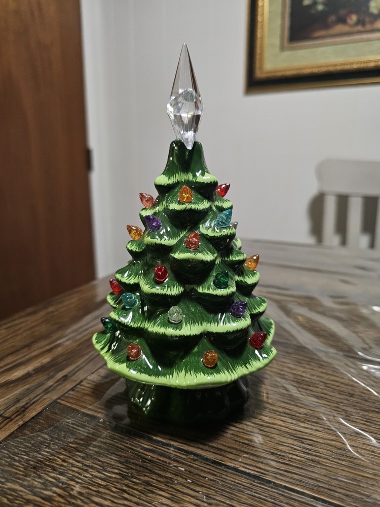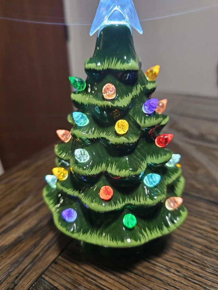 Ceramic Tabletop Christmas Tree with Lights 7.5 Inches Tall