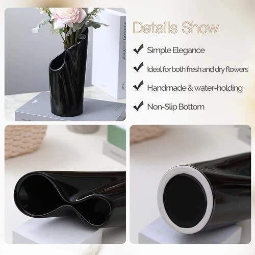 Menu 1. We require immediate payment. 2. We currently accept payment via eBay managed payments only. 3. Once payment is cleared, we will dispatch your shipment within 1-3 business days. Please refer to the "Shipping" tab for more information regarding shipping speed to your destination. Ceramic Vase,Flower Vase for Home Décor,Table Centerpiece, Vase for Living Room, Dining Table, Entryway, Mantle, Shelf, Office (Contemporary Black) Product description Elegant Ceramic Vase-Handcrafted with high-quality ceramic, this vase is 9.1 inches tall, water-holding and features a smooth finish. Perfect for fresh or dried flowers- Enhance your space with our beautifully crafted vase, perfect for showcg a variety of flowers and plants. Unique Streamlined Shape-With its distinctive streamlined form, this vase adds a touch of simple elegance to any room, offering a refreshing visual appeal. The sleek, elegant color and design, make this vase a perfect match for a variety of flowers and tabletops. It's ideal for both personal use and gifting. Secure Shipping-Each vase is securely packaged with cushioning material for safe delivery to your doorstep, ensuring it arrives in perfect condition. PLEASE MESSAGE US IF YOU HAVE ANY OTHER QUESTIONS, AND MANY THANKS FOR READING ALL OF THIS. Copyright ©#. All Rights Reserved.