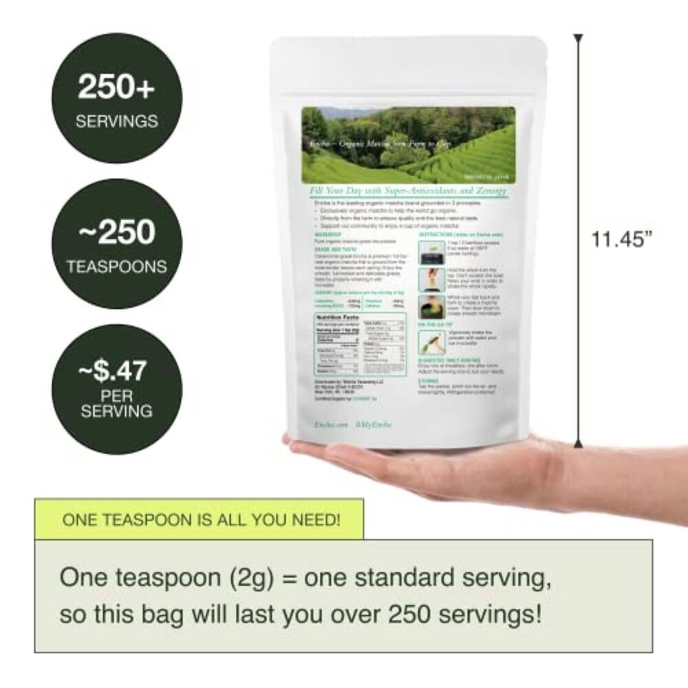 Ceremonial Grade Matcha: Our premium, 100% organic matcha tea powder is ground from the most tender matcha leaves, plucked each spring from our farm in the hills of Uji, Japan. All matcha tea is USDA certified organic, consisting only of the finest quality organic tea leaves. Rich and Complex Flavor: Our matcha powder offers a perfectly balanced palate, both sweet and earthy, with a smooth, velvety consistency when whisked into water. Boost Energy and Focus: Skip the coffee and allow our matcha green tea powder to provide a natural pick-me-up. Organic matcha is rich in antioxidants and offers clean and consistent energy and mental clarity without any crash. How to Brew: To prepare a traditional matcha green tea, simply take 1 tsp ceremonial matcha and whisk vigorously into 5 oz hot water at 160°F. Enjoy the balanced flavor and health benefits of organic green tea.