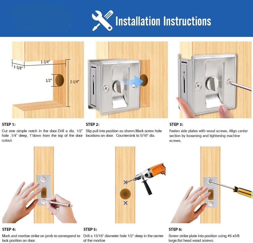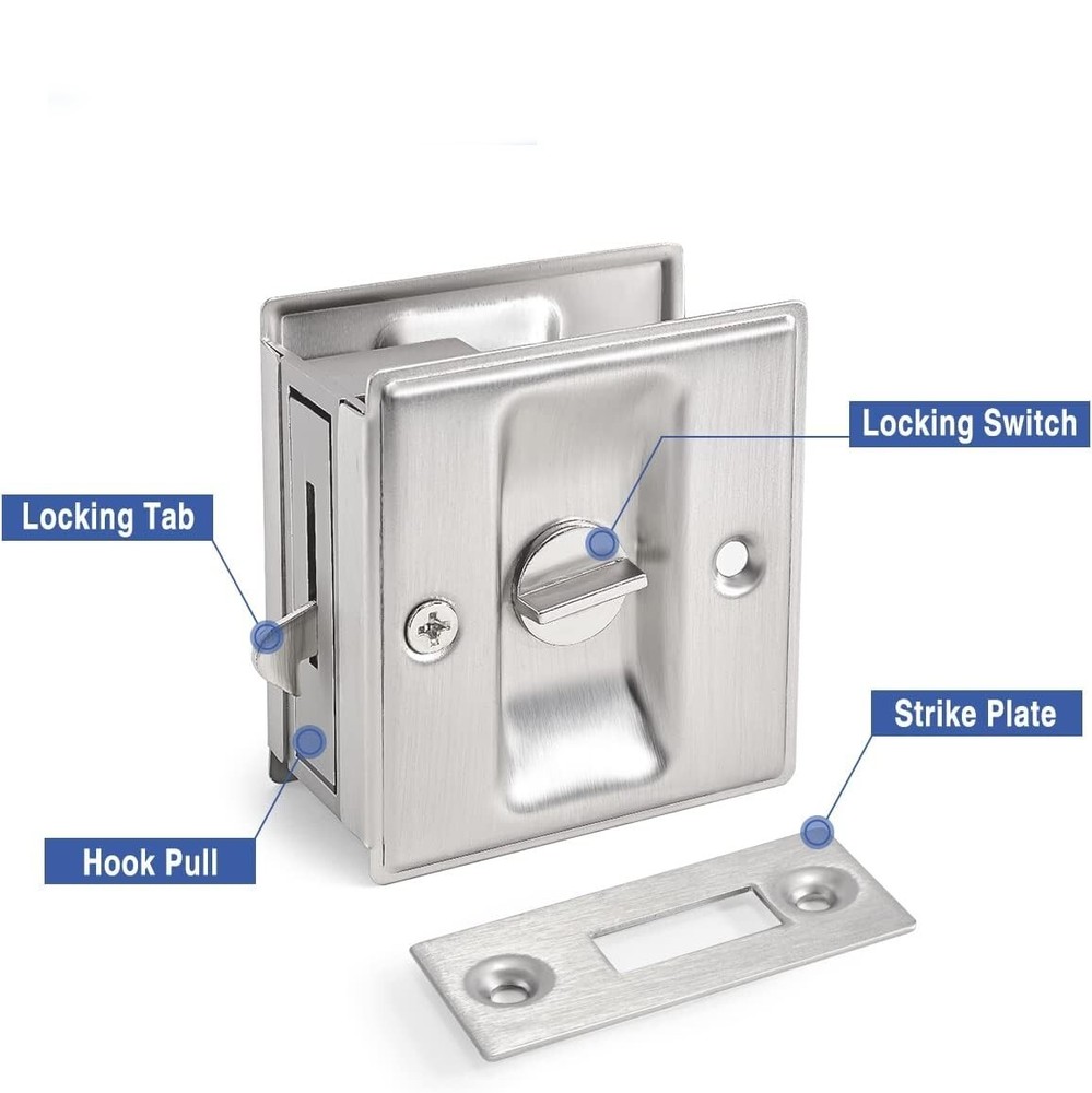 Cerradura De Puerta De Bolsillo De Privacidad De Plata Cepillada De 2.8 Pulgadas Control de privacidad elegante: disfrute de una privacidad suave con una cerradura adecuada para puertas de apertura izquierda y derecha; cuenta con un diseño ancho y de fácil agarre; perfecta para actualizar o reemplazar cerraduras antiguas. Diseño versátil y reversible: se adapta a puertas de 1-3/8" de espesor; placas reversibles para una instalación flexible; el diseño sin mano funciona con puertas de apertura izquierda y derecha; adaptable a diversas necesidades. Construcción sólida y confiable: hecha de acero inoxidable y zinc; resiste el uso diario mientras mantiene un rendimiento confiable; brinda protección de privacidad segura. Instalación sin esfuerzo: incluye todo el hardware e instrucciones para una instalación rápida y fácil; reemplaza cerraduras antiguas sin cambiar toda la puerta; diseñada para una instalación de embutir perfecta. Opciones de acabado elegantes: elige entre tres acabados elegantes: níquel satinado cepillado, bronce frotado con aceite y negro, latón y latón antiguo; complementa varios estilos de interior; mejora tanto la apariencia como la funcionalidad.