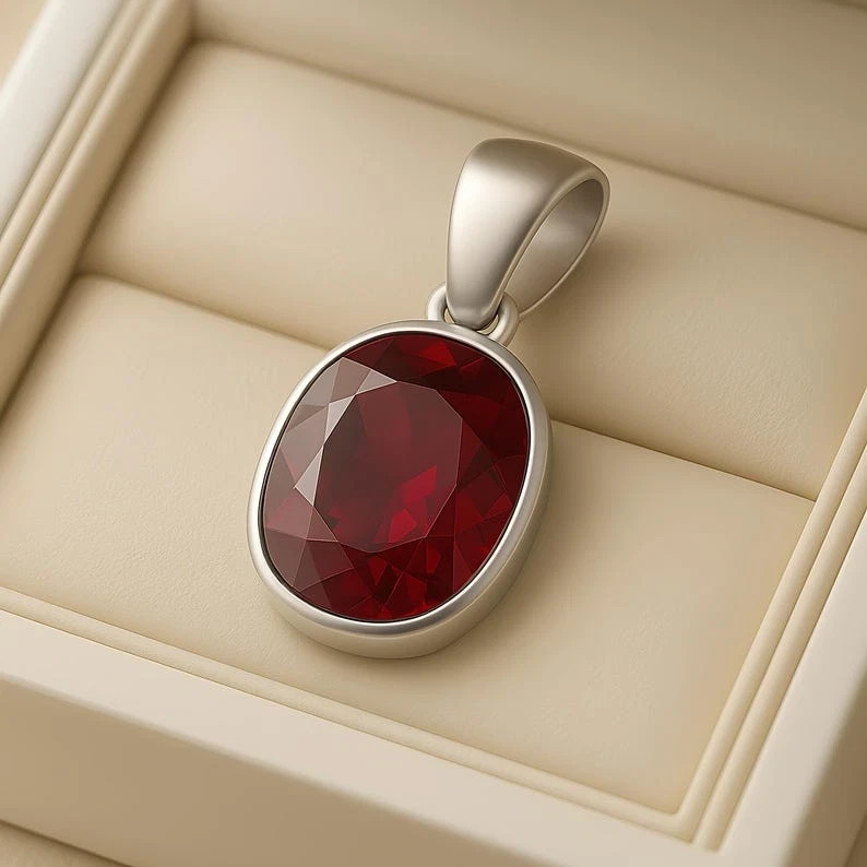 Certified 10 Ct Burma Natural Red Ruby Pendant in 925 Sterling Silver for Women Enhance your elegance with this stunning 10 Carat Natural Red Ruby Pendant , sourced from Burma (Myanmar) and crafted in high-quality 925 Sterling Silver . Known for its rich, fiery color and timeless beauty, Burmese Ruby remains one of the most desired gemstones worldwide. This ruby has undergone standard heating , the globally accepted treatment to enrich its natural red hue and brilliance. The result is a vivid, glowing gemstone that shines beautifully in any light. Perfectly designed for women who appreciate luxury, sophistication, and classic gemstone jewelry, this certified ruby pendant is ideal for daily wear, gifting, or adding to a fine jewelry collection. Gemstone & Pendant Details: Gemstone: Natural Ruby Weight: 10.00 Carats Color: Deep Blood Red Origin: Burma (Myanmar) Treatment: Heated Metal: 925 Sterling Silver Certification: Yes Key Highlights: Genuine Burmese Ruby with rich red glow Durable 925 silver setting for long-lasting wear Certified natural gemstone A perfect gift for birthdays, anniversaries & special occasions Elegant pendant suitable for women of all ages π Ships Worldwide with Tracking π¦ Secure & Protective Packaging β±οΈ Handling Time: 1β2 Business Days π Estimated Delivery: 10β15 Days (Varies by Location) π 30-DAY RETURN POLICY β BUY WITH CONFIDENCE We offer a 30-Day Hassle-Free Return Policy . Return the item in its original condition if you're not fully satisfied. π€ YOUR SATISFACTION MATTERS π¬ Contact us anytime for support, questions, or custom requests. We're available 24/7 to provide fast and friendly service. π οΈ CUSTOM ORDERS WELCOME π© Reach out to Gemoracrafts β Experts in handcrafted luxury design. ποΈ ABOUT GEMORACRAFTS Gemoracrafts is your trusted source for rare, certified gemstones and bespoke jewelry solutions . Every gem is carefully selected for quality, authenticity, and long-term value.