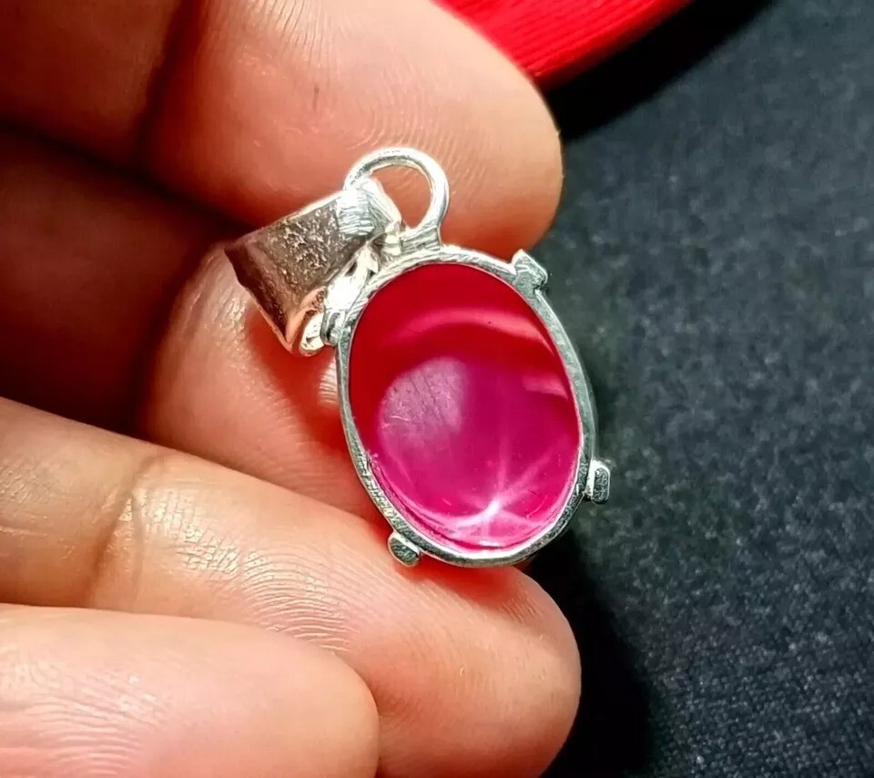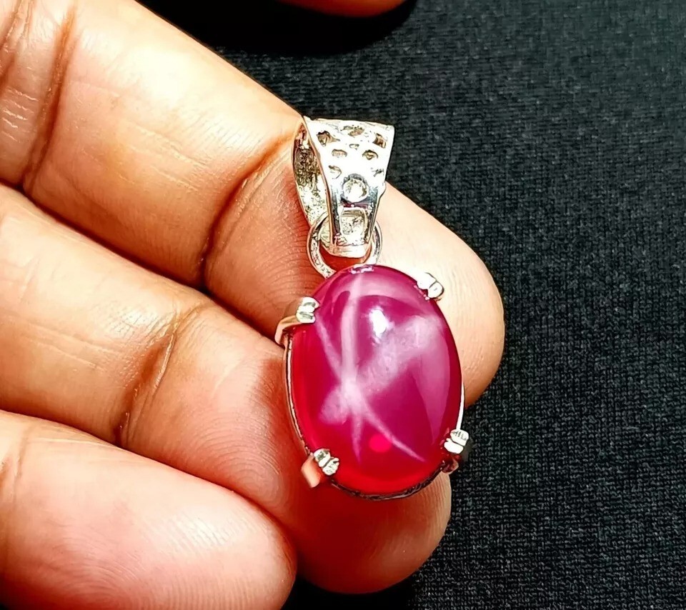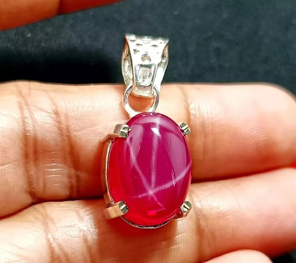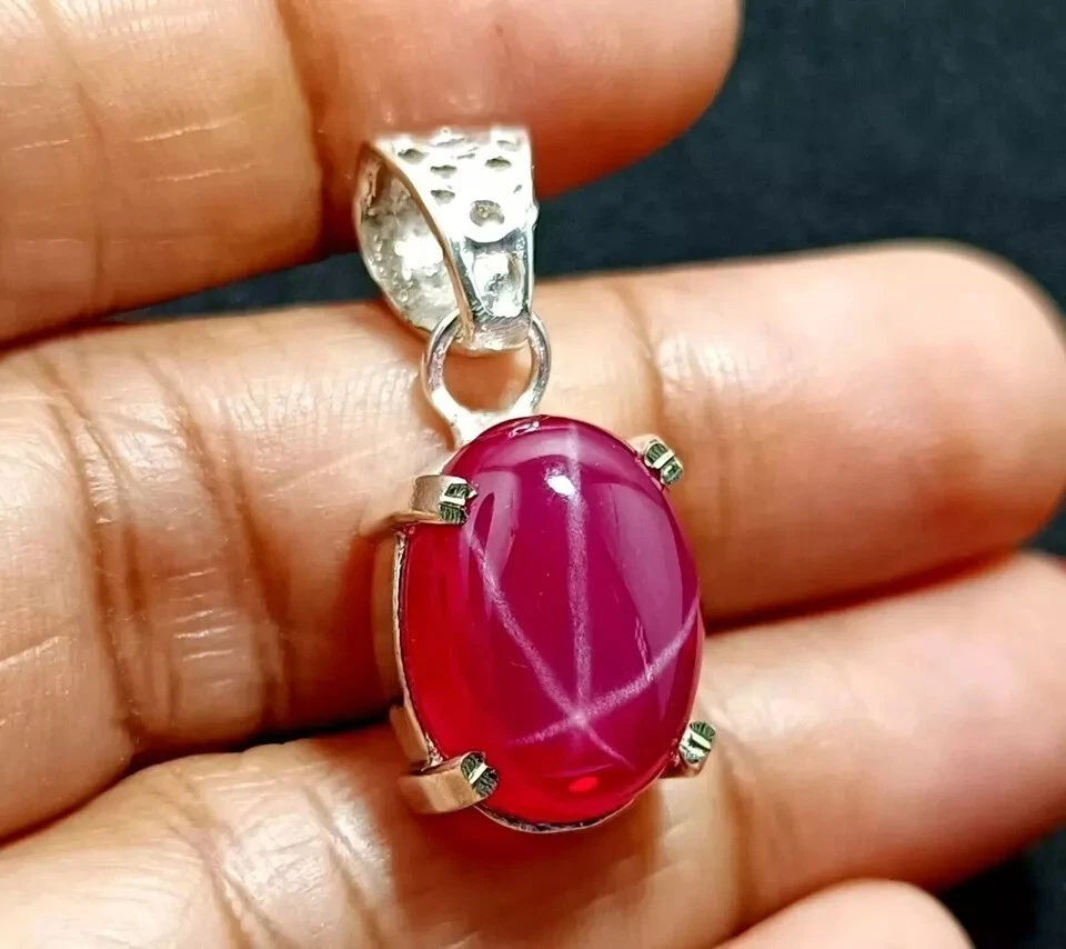 Main Stone: Star Ruby Era: Undated Theme: Nature Country/Region of Manufacture: India Handmade: Yes Main Stone Color: Red Number of Gemstones: 1 Secondary Stone: N/A Signed: Yes Main Stone Treatment: Not Enhanced Cut Grade: Excellent Material: Gemstone Base Metal: Silver Setting Style: Prong Type: Pendant Chain Type: N/A Main Stone Depth: N/A Pendant/Locket Type: Charm Main Stone Creation: Natural Metal Purity: 925 Closure: Hook Seller Notes: “''New Condition"” Main Stone Width: N/A Pendant Shape: Oval Main Stone Shape: Oval Necklace Length: N/A Occasion: Anniversary, Birthday, Christening, Christmas, Engagement, Mother's Day, Valentine's Day, Wedding Brand: Jitendergems Personalize: Yes Gemstone Clarity Grade: Eye Clean gtin13: Does Not Apply Seller Warranty: Yes Country of Origin: BURMA UPC: Does Not Apply Main Stone Length: N/A Metal: Silver Color: Red Wholesale: Yes Vintage: Yes Style: Pendant Features: Adjustable