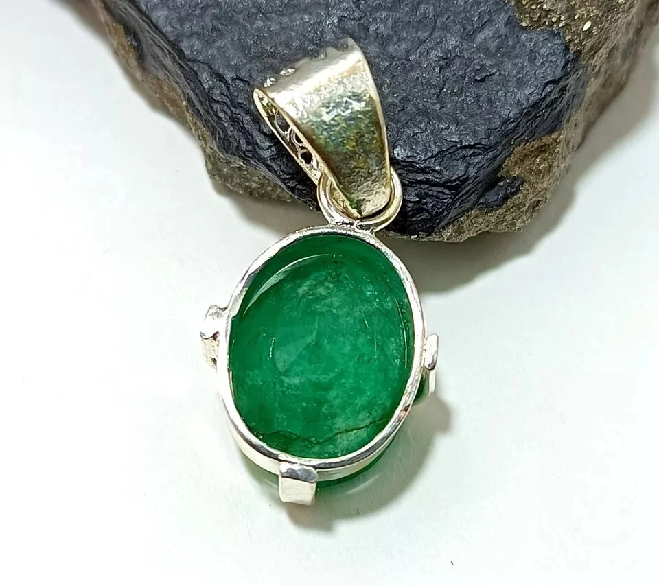 $ 116.16Oval Natural Green Emerald Sterling Silver May Birth Sister Boho Pendant Jewelry