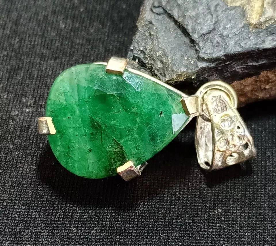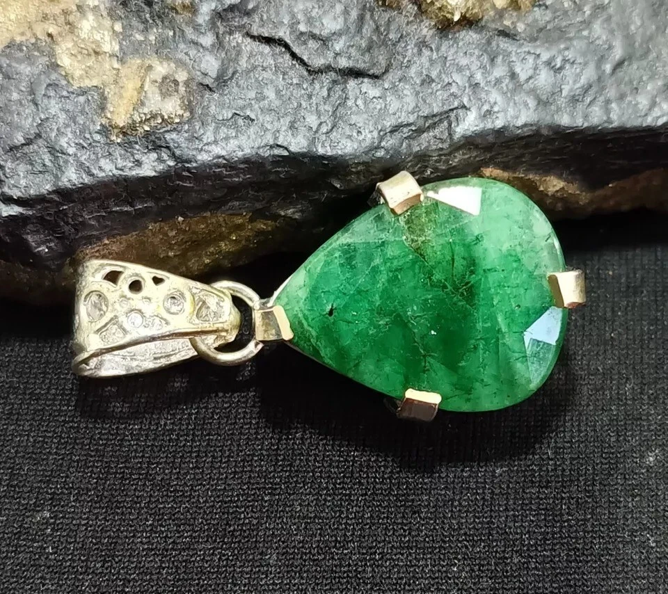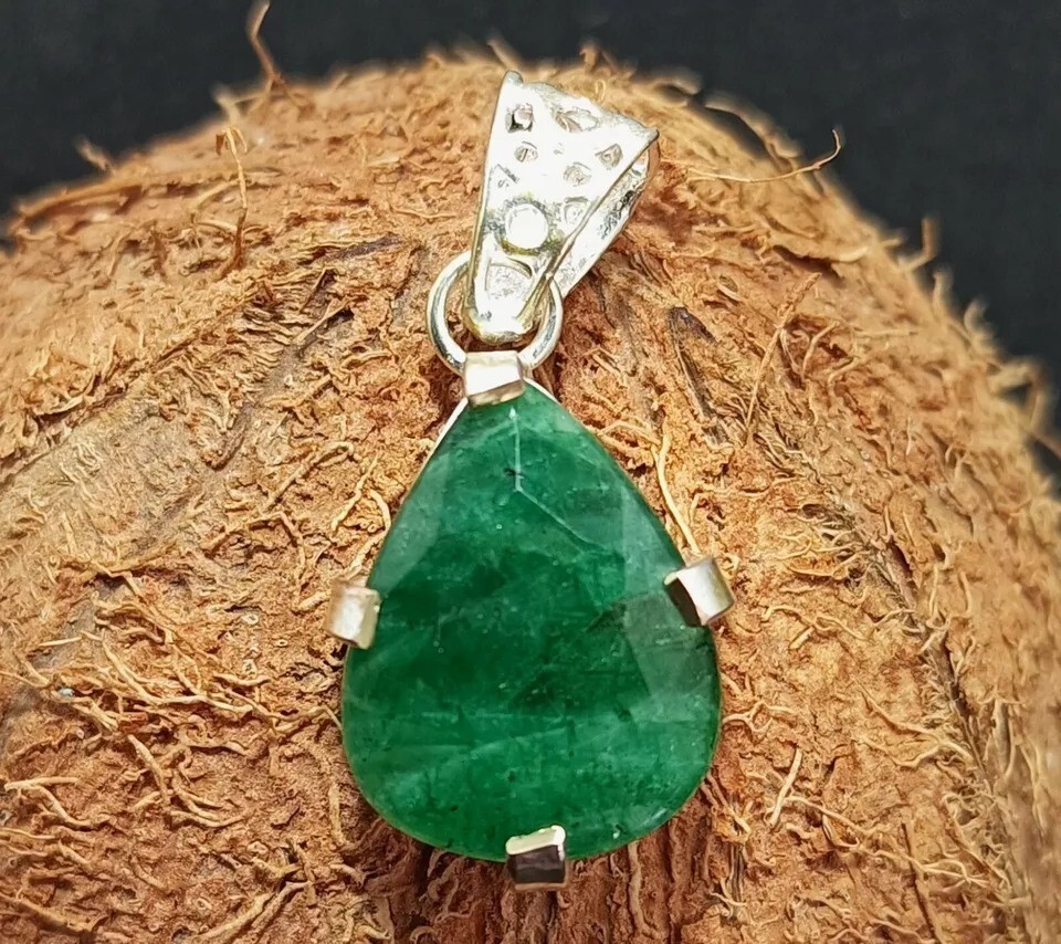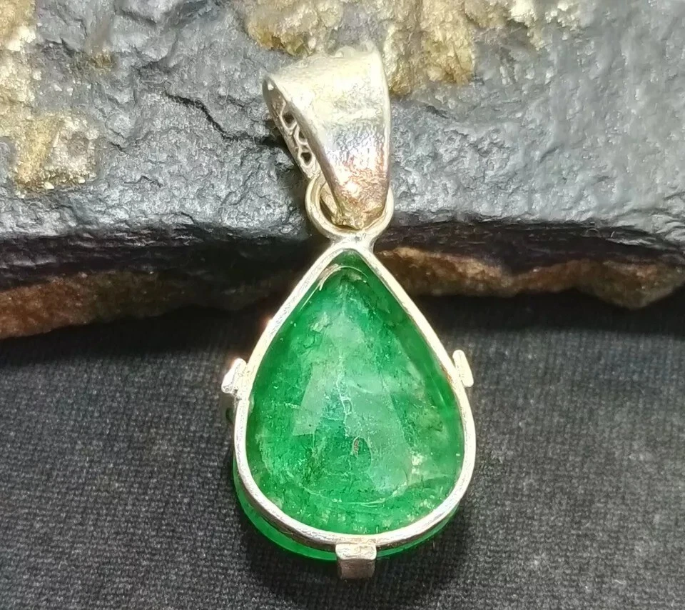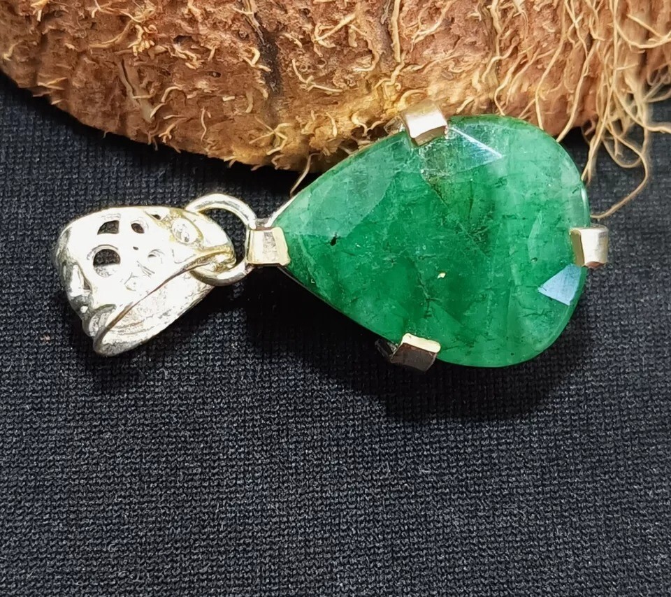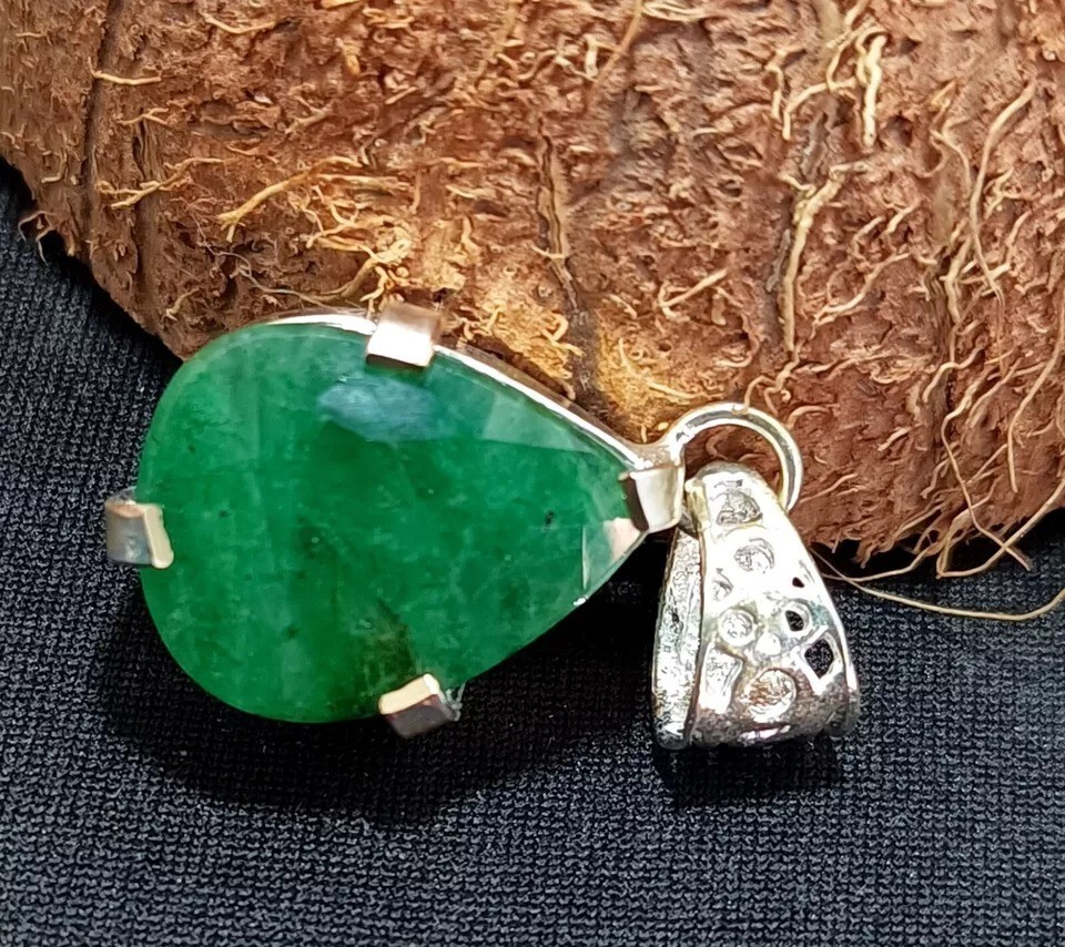 $ 19.7728.05 Ct Certified Natural Emerald Round Cut 925 Silver Pendant Gemstone