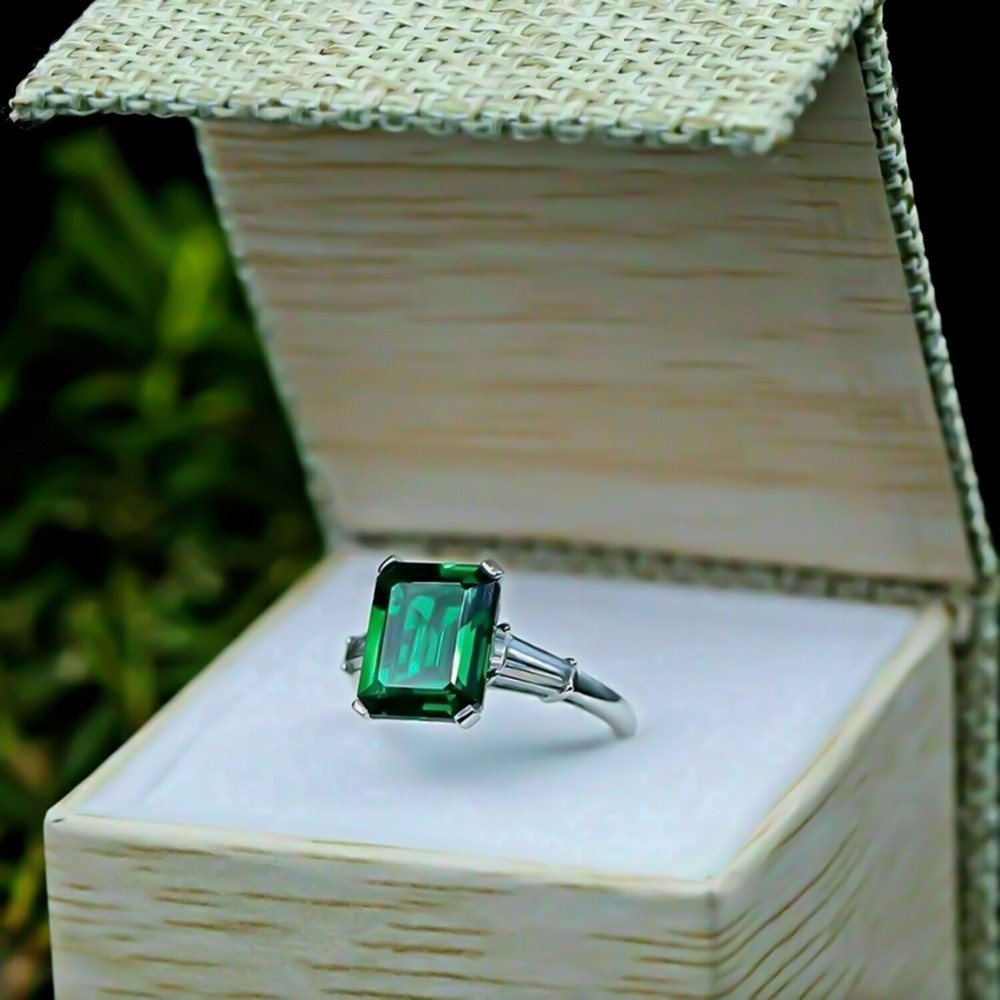 Certified Natural 7.2ct Asscher Cut White Diamond 925 Silver Ring For Valentines