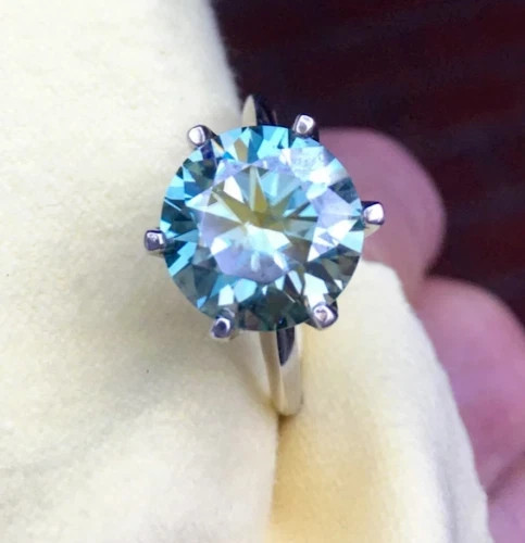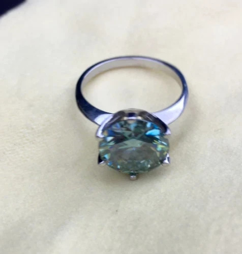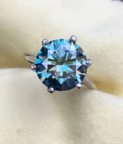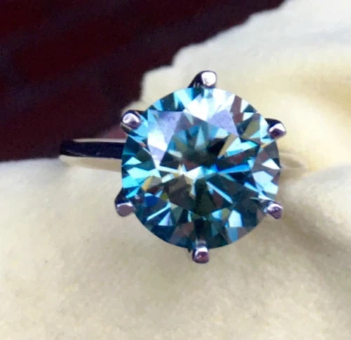 ELEGANT LOOK! GREAT SHINE! Diamond Color - Blue Shape of Diamond - Round Brilliant Cut Approx. Weight of Diamond - 5.45 Carat Approx. Size of Diamond - 12 mm Origin of Diamond - Brazil Species - Earth Mined Treated - HPHT Clarity - VVS1 Cut - Excellent Size of Ring – US 7 is default size - (Can be resized for additional $ 20.00 or default will be shipped) https://www.ebay.com/itm/404196768619 You can pay for resizing from the following link: Please copy and paste the above link in your browser Metal - Stamped Solid 925 Sterling Silver Finish - White Gold This diamond ring is handcrafted with utmost care. Would make an ideal gift for someone special. The diamond has excellent cut and luster. Comes in attractive packaging. CERTIFICATE OF AUTHENTICITY PROVIDED Shipping : Shipping is by UPS/SPEEDPOST/FEDEX or similar shipping agencies to reach you in 9-12 business days after processing the order. Tracking is provided. Please note: Jewelry items can take up to 10-12 business days to process to take care of ring sizing if any, polishing, finishing, packing and handling, certification, documentation etc. Shipping Charges include eBay fees on Shipping, packaging, certification costs, manpower costs, overheads, taxes etc. in addition to actual courier/postal expenses which have increased substantially as a result of pandemic & global economic conditions. We do not artificially increase the price of the products to include shipping charges but only charge what shipping actually costs us. Combined Shipping: Combined shipping discount is available up to 5 (Five)items in an order to be purchased within 5 days. You can continue to buy- Any additional items above 5 in quantity will be considered a new order. This is to avoid pilferage en-route as well as to ensure that you are happy with the merchandise. Once you have received their items you may buy additional items again. This limit may be revised for repeat and regular customers. Payment: Buyers are requested to pay within 3 (Three) days of purchases. eBay will automatically open unpaid item cases in case payment is not received within this period. The item will also be available for purchase to other buyers till such time that the payment is received. Customs and Taxes: Any customs duties, charges and local taxes are subject to local laws and vary from country to country and hence the payment of any eventual custom duties, charges, levies and taxes etc will be at the buyer's expense. We do not have any control on the same. Returns & Refunds: You can return the item within 14 days of receiving the parcel. - Please return in original packing. Buyers are required to check and ensure that the item/s are in good condition and as per item listing on eBay as no claims for returns and refunds will be entertained thereafter. The returned item should be unused and in original and undamaged condition. Buyer will be required to ensure that the item is sent by trackable shipper. Shipping charges are non-refundable. Refunds are made by PayPal and may take up to 5-7days after receiving back the product/s. Disputes: We aim to settle all disputes amicably. Please do not open any dispute on eBay for dis-satisfaction or for non-receipt or to return an item. We are available through ebay messages system and most messages are replied in a few hours. Personalized satisfaction is of utmost importance to us. Feedback : We always provide excellent feedback to our buyers and expect the same in return with 5-star ratings. In case of any dissatisfaction or any other reason please do contact us before leaving any neutral or negative feedback - we will strive our best to resolve all issues to your satisfaction. Metal : Silver is 925 Sterling Silver with Nickel Free Rhodium Plating. Please refrain from buying if you have allergic reaction to metals. We will not be responsible for any health problems in this regard. Legal Disclaimer : Refund or any claim liability for the buyer is only limited to the value of the item purchased. No additional claims will be entertained for any other reason whatsoever. Please note that since various labs may have different testing methods and the interpretation of all our Diamonds and Stones may differ from one lab to another as well as from one Gemologist, appraiser and Jeweler to another, we will be unable to accept another Lab Certificate or the judgement of any other third party including any Gemologist, appraiser, Lab, Jeweler etc. By consenting to buy our items it is understood that you have read, understood and agree to the terms and conditions as well as the FAQ for the Diamonds and Jewelry being sold buys. FAQ What are Color Diamonds? These are genuine Colored Diamonds found naturally mines mainly from Brazil. They are more porous than White Diamonds and are found in the upper layers of the ground relative to the White Diamonds that are mined deep. Some scientists are of the opinion that their origin maybe a Meteor that impacted earth Billions of years ago. What is their nature? Colored Diamonds are not found in the state as they are sold. They are made from earth mined rough rock found in mines of Brazil. The Rock color varies from Light Blue, Dark Blue, Champagne, Pink, Green etc. What is the treatment process? To bring out its true color it needs to be treated. The process is a natural one employing gentle heating a high-pressure environment (HPHT) which gradually brings out the true color of the Diamond. Are any artificial colors or chemicals added? There are no artificial colors or chemicals included in the process. They are not irradiated. Does it alter the composition? The process may or may not alter the composition. It remains a true Diamond nevertheless. Once our diamonds are heat-treated, it may move the molecules. This causes them to not always test properly with a hand tester. If a hand tester is used, sometimes they test as diamonds and sometimes they test as moissanites. But they are genuine earth mined diamonds, not mois
