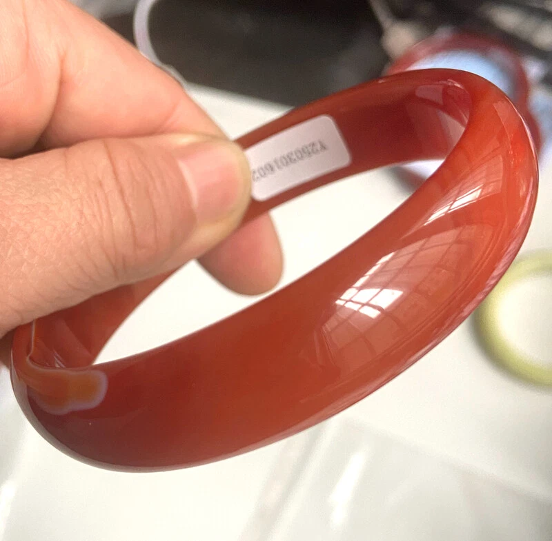 Just got this stunning brazilian chalcedony bangle and wow! The icy red color is absolutely mesmerizing - it catches the light beautifully. Fits perfectly and feels so smooth and cool against the skin. Arrived in perfect condition and looks way more expensive than it was. Definitely my new favorite piece!