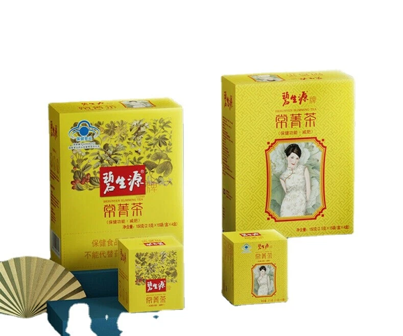 BESUNYEN SLIMMING TEA Bishengyuan Burn Fat and Lose Weight Tea Package: 2.5g*15 bags/small Box, 4 small boxes / big box, Total 150g Valid: 18 months, always New Produce Date Update Ingredient: Green tea, honeysuckle, semen cassiae, lotus leaf, Gynostemma, hawthorn, pure honey, senna and etc. Description: It is made with traditional Chinese herbal essence, extract anti-fat material using the advanced extraction technology from a number of herbs. So that an increase of 20 times the weight-loss results, especially have effect on eliminating the fat on abdonen and waist part. Function: The Bishengyuan slimming tea effectively removes the intestinal fat oil, accumulated stool, toxins and other harmful substances which fat causing materials. It help you to extract the oil that day to eat. And the anti-fat material resolve stubborn fat cells, making them transformed into energy consumed. Then the body will feel a little heat, drink plenty of water in order to facilitate the discharge of oil. Usage & Dosage: Pouring 150ml boiling before meal and then pouring 150ml boiling water after meal and then drink it. Take 1-2 bags every time, twice a day. Package: 4 Boxes, One Box include 15 bags, 2.5g/bag, Total 150g. Kindly Reminders: 1. Do not use if you're pregnant or breeding. 2. Do not drink the other beverage within one hour of taking slimming tea; 3. Aviod cold food as much as possible. 100% Natural Green Food No Any Artificial Addictives or Chemical Additives Two types of packaging are randomly shipped.