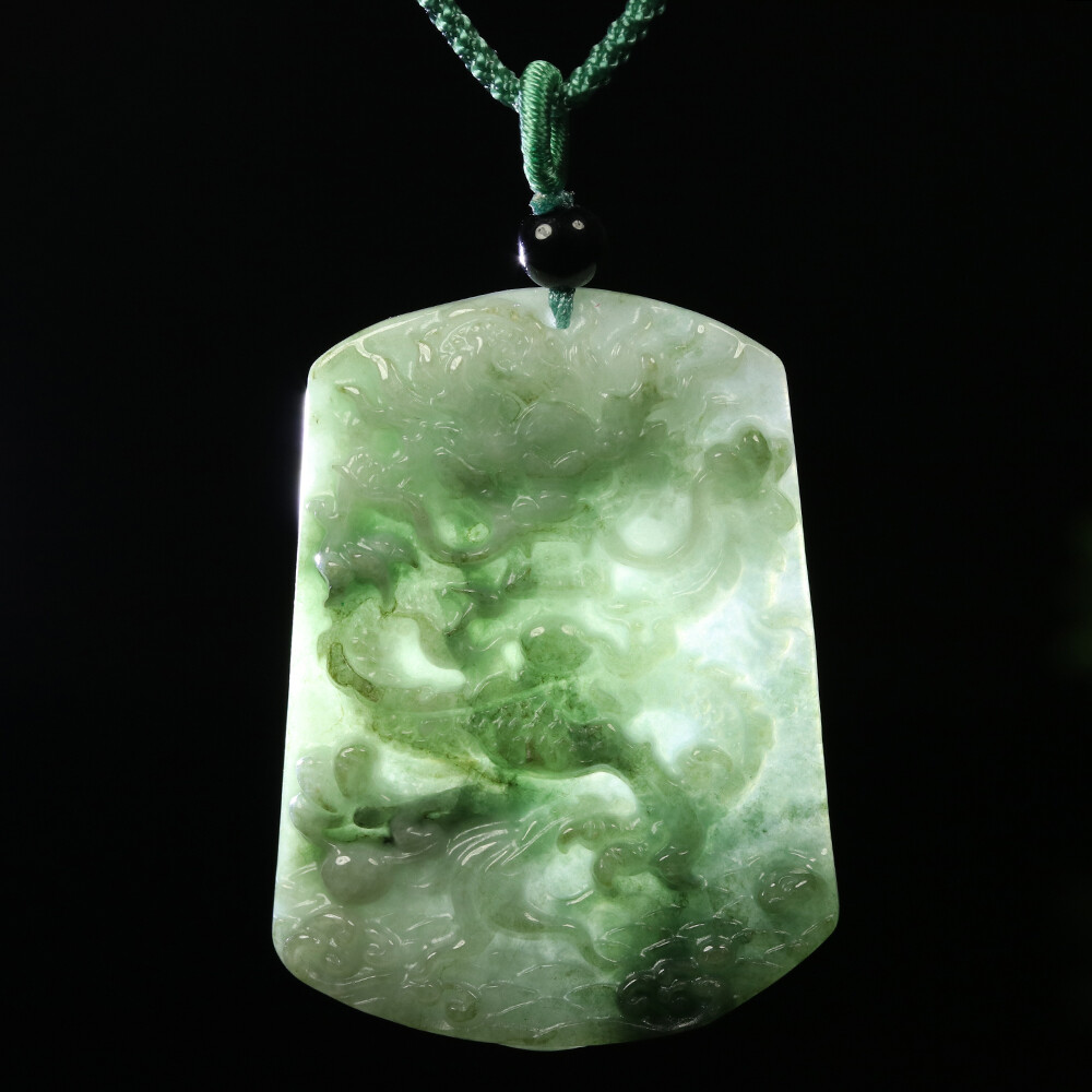 $ 1.59Chinese Beautiful Natural Green Jade Hand-carved Lucky Buckle Jadeite Pendant