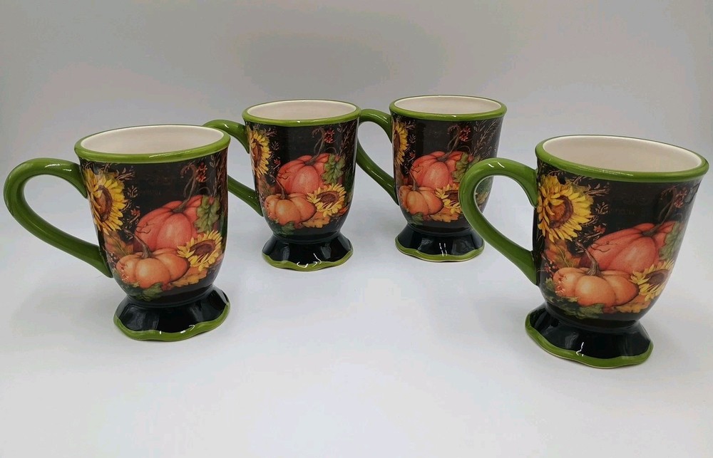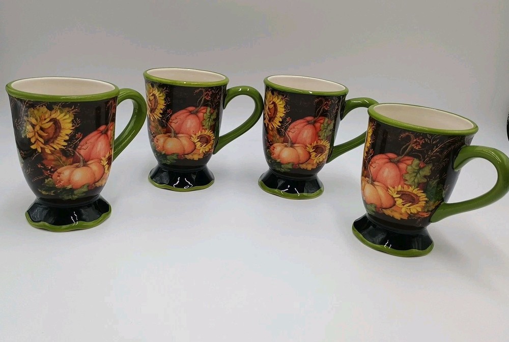 Certified International Susan Winget Botanical Autumn Footed Mugs Set Of 4 Mugs Set of 4 autumn mugs in excellent condition - no chips or cracks.