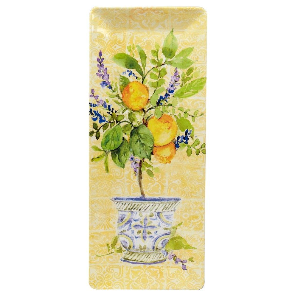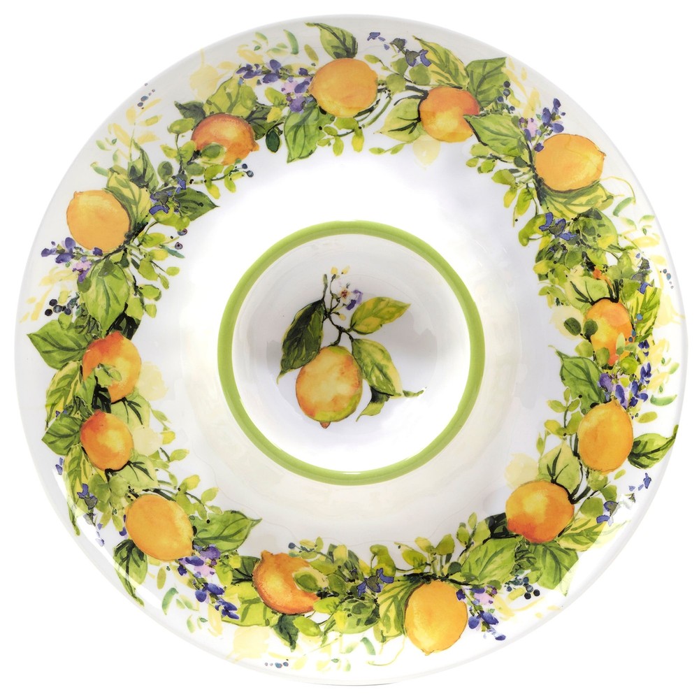 Add some colorful zest to your outdoor and indoor dining with Certified International's Lemon Zest 3 pieces Melamine Hostess Set. Featuring bright yellow lemons with lavender floral accents by the popular artist Susan Winget, in heavyweight 100% melamine. This versatile set includes a Chip & Dip, 3 section tray and a rectangular platter offers fun options for all your serving and entertaining needs. Be sure to order the rest of the coordinating melamine dinnerware and serveware, including fun 3-d lemon sets to complete your dining experience.Features:Set includes: One (1) chip and dip, one (1) 3-section relish tray and one (1) rectangular platterMaterials: 100% durable melamineColor: MultiPerfect for outdoor and indoor casual diningGreat idea for shower, hostess or housewarming Free Shipping Over $49.99* Details Certified International Lemon Zest 3-piece Melamine Hostess Serving Set Product Description: Add some colorful zest to your outdoor and indoor dining with Certified International's Lemon Zest 3 pieces Melamine Hostess Set. Featuring bright yellow lemons with lavender floral accents by the popular artist Susan Winget, in heavyweight 100% melamine. This versatile set includes a Chip & Dip, 3 section tray and a rectangular platter offers fun options for all your serving and entertaining needs. Be sure to order the rest of the coordinating melamine dinnerware and serveware, including fun 3-d lemon sets to complete your dining experience. Features: Set includesOne (1) chip and dip, one (1) 3-section relish tray and one (1) rectangular platter Materials100% durable melamine ColorMulti Perfect for outdoor and indoor casual dining Great idea for shower, hostess or housewarming gifts Dishwasher safe and not for use in microwave oven Dimensions: Chip and dip1.5 inches high x 14.5 inches wide x 14.5 inches deep 3-section relish tray14.5 inches wide x 5.75 inches deep Rectangular platter19 inches wide x 8 inches deep This product will ship to you in one (1) box.