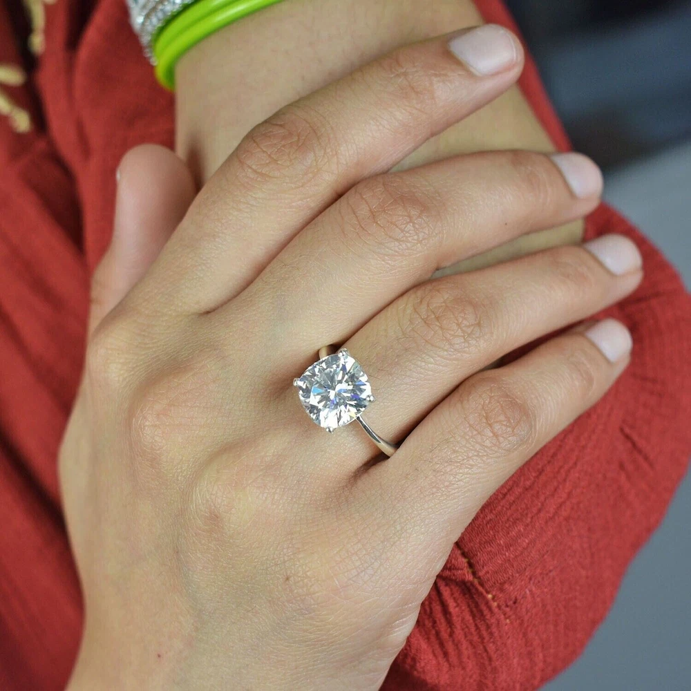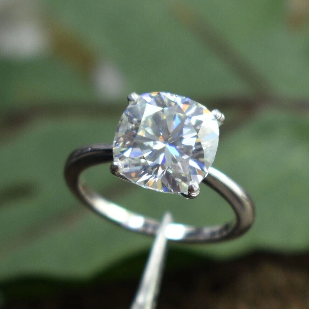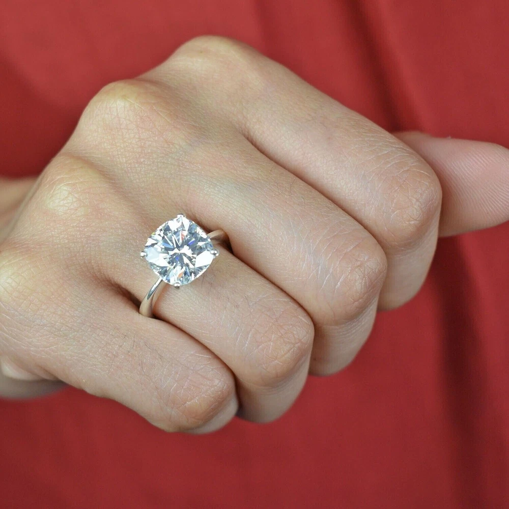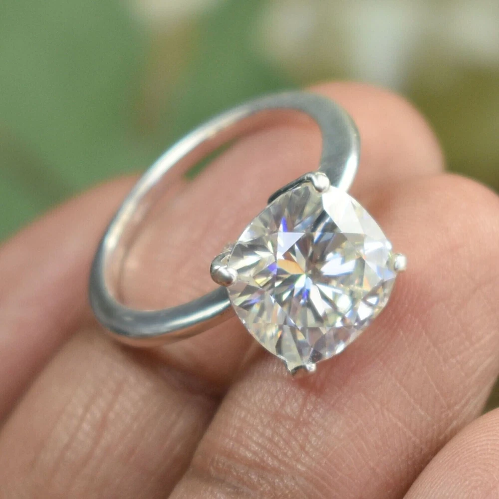 Certified Natural 2ct Cushion Cut VS1 Diamond Ring 925 Silver Handmade Jewelry