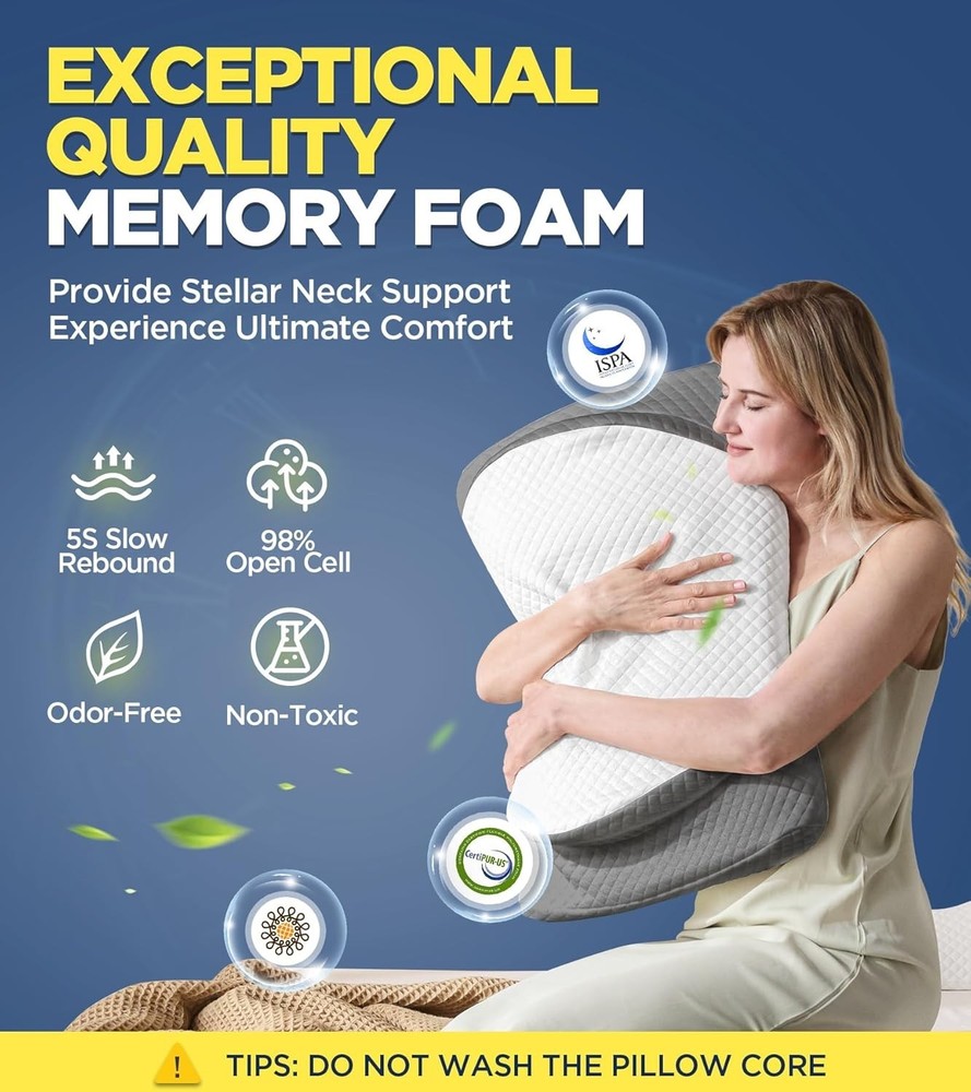 $ 27.75Cervical Neck Pillow, Ergonomic Memory Foam Pillow for Neck Pain Relief and Snor