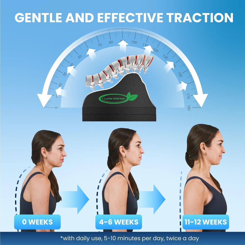 Cervical Orthotic Traction Block Neck Stretcher and Lumbar Traction Block Back Stretcher for Lower Back Pain Relief Bundle Product Details Brand: Lumia Wellness Special Feature: Adjustable Age Range (Description): Adult Date First Available: September 22, 2023 3 Level Adjustability - Allows for people of all sizes to use. 3 height adjustable block with 2 removable base layers. Also allows for progressive strengthening and improved flexibility of the lumbar spine. We recommend 5-15 minutes of daily use, 1-2 times per day. Return to Normal - Get back to the active life you once had. Stretch your lumbar back to its original, proper curvature and enjoy your long lost mobility and quality of life. Unique Apex Curve - Custom designed fulcrum point allows for optimal back traction and effectiveness, without the pain. The fulcrum point allows for a stretch custom tailored to you. Easily target your upper, middle, or lower back and find the relief youre looking for. Gentle stretch aides in restoring natural cervical curvature. Provides relief for shoulder pain, tension, and forward head posture. Can also help with headache and migraine relief. Can aide in correcting forward posture, forward head tilt, military neck, and stress. Can also provide pinched nerve pain relief and functions as a shoulder stretcher and neck holder. The Lumia Wellness Cervical Orthotic Traction Block utilizes a uniquely engineered apex curve to aide in restoring natural neck curvature through cervical traction. Over a year was spent designing the ideal curvature for this neck correction block. This is an ideal traction block for chiropractors, physical therapists, and personal trainers. It is an excellent neck and shoulder relaxer and provides relief from TMJ and over cervical spine alignment issues. Lumbar Lower Back: The primary focus of this lumbar traction device is the lower back, where many individuals experience discomfort and pain. By targeting the lumbar region, it effectively alleviates pressure and tension in the lower back, providing relief from issues such as lumbar adjustment, lumbar lordosis, and traccion lumbar. Decompression Chiropractic Blocks: This device essentially functions as decompression chiropractic blocks that you can use at home. Chiropractic care often includes spinal decompression to relieve pressure on spinal discs, and the Lumia Wellness Traction Block replicates this technique in a user-friendly and adjustable manner.