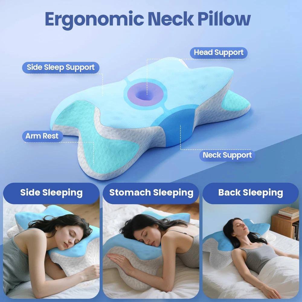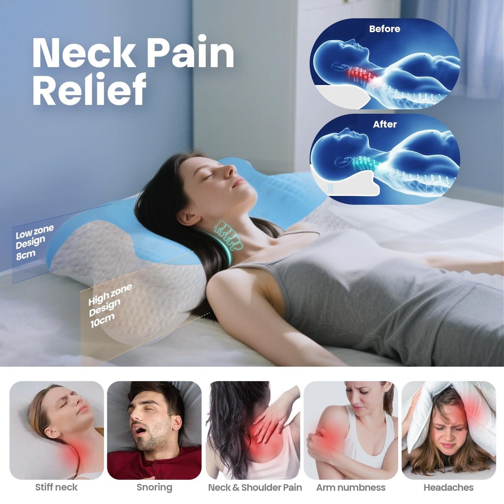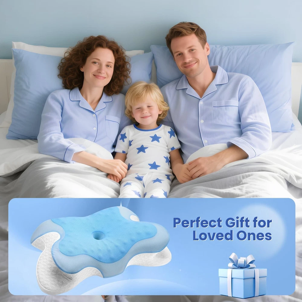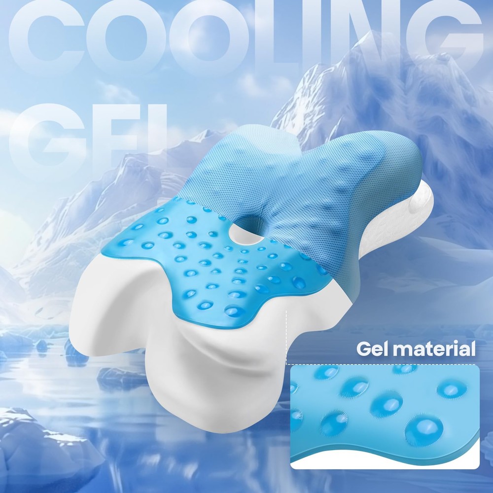 Cooling Cervical Neck Pillow, Memory Foam Pillows with Cooling Gel, Butterfly Ergonomic Pillow for Neck Pain Relief, Pillow for Side Sleepers Sleeping Gifts for Women Men Dorm Room 3D Cooling Gel Layer - Neck Pillow with cooling gel that feels cooler than room temperature. Perfect for hot sleepers who toss all night–finally, a pillow that won’t trap heat like a sauna mask! [NOTE]: Our pillows come vacuum-sealed, so they’ll fully expand within 24-48 hours after opening. Neck Pain Relief - Designed by orthopedic specialists, this pillow for neck pain relief contours to your spine like a therapist’s hands. Our cervical neck pillow’s medical-grade gel + memory foam pillows core cradles pressure points 35% better than basic foam, proven to ease headaches and stiffness. The gel surface soothes sore muscles with gentle cooling, while the ergonomic pillow shape prevents "morning crunch" –92% of users report waking up with looser shoulders! All-Night Comfort for Side/Back Sleepers - The cervical neck pillow’s wave-shaped base snug fit with your head-neck-shoulders. Side sleepers love the contour groove, bye-bye arm numbness! While back sleepers rave about the cooling gel. Gel Magic Meets Cloud Comfort - Made from plush and skin - friendly material, offering a luxurious feel against your skin for a more restful slumber. Removable & Washable Cover is easy to take off and clean, ensuring your pillow stays fresh and hygienic for long - term use. Ideal Gift & Innovative Design - As the only ergonomic neck pillow for sleeping with cooling gel tech and memory foam design, it makes for a perfect gift for loved ones on birthdays, Valentine's Day, Father's Day, Mother's Day, Christmas Gifts Thankyou Gifts and is also the dorm room essentials for girls and boys.