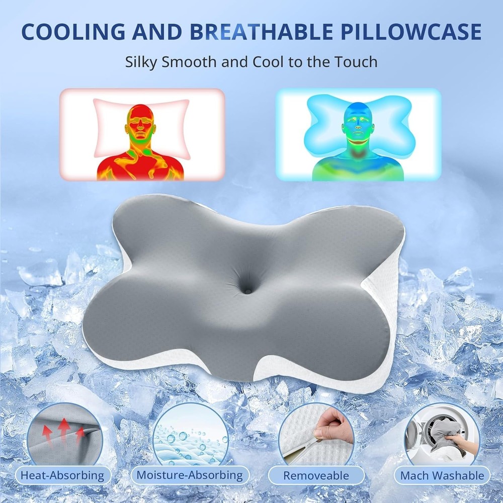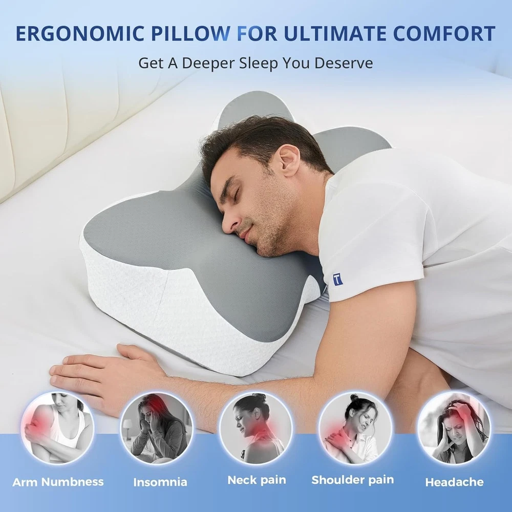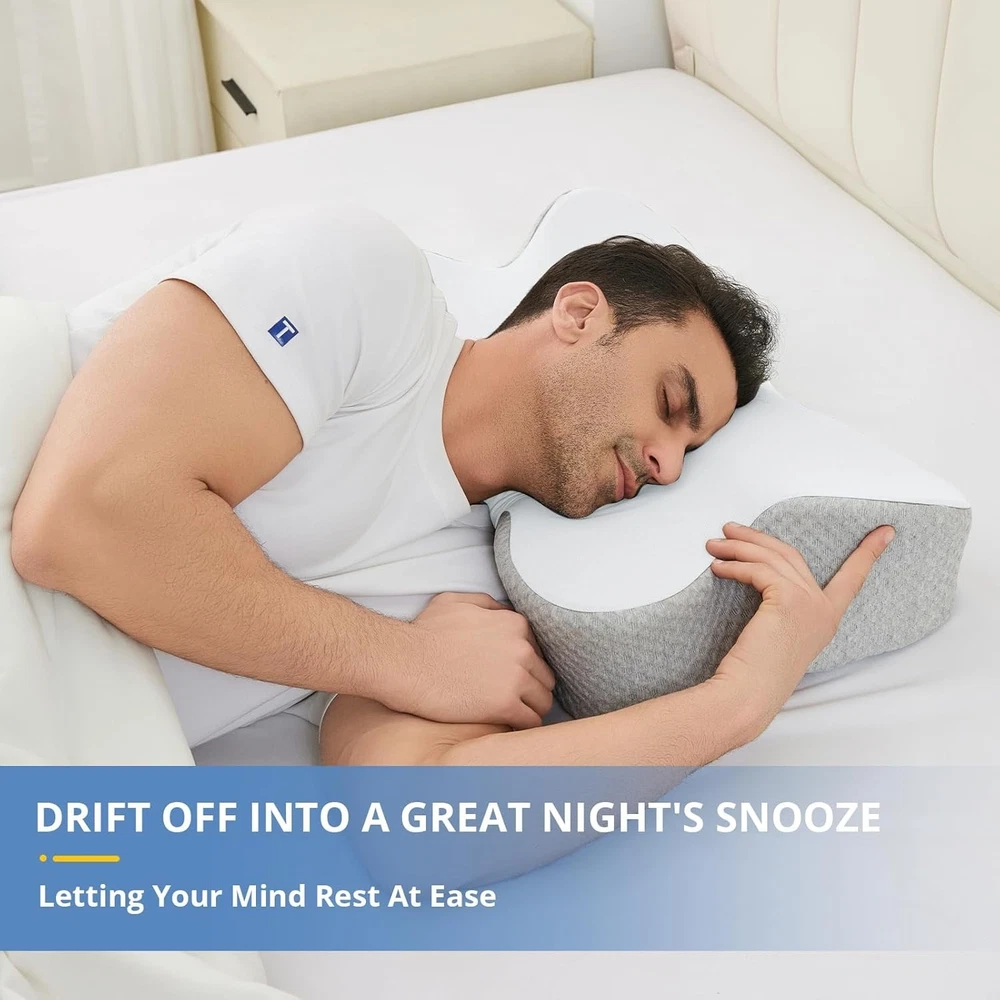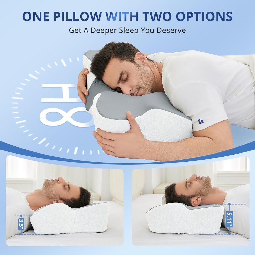 JOLLYVOGUE Cervical Neck Pillow for Pain Relief Memory Foam Side Sleeper Pillow with Cooling Pillowcase, Ergonomic Design for Back Stomach Sleepers, Medium About this item Ergonomic Support: Contour design cradles head, neck & shoulders for side/back/stomach sleepers, reducing tension and promoting restful sleep 2-in-1 Adjustable Height (5.1" or 3.5") + Armrest Grooves: Flip for perfect alignment; recesses relieve shoulder pressure for side sleepers Zip-Off Cooling Pillowcase: Breathable, moisture-wicking cover with zipper for easy removal and machine washing. Stays cool all night CertiPUR-US Cooling Gel Memory Foam: Slow-rebound, supportive foam with cooling gel layers prevents heat buildup and maintains shape Trusted Comfort Upgrade: Loved by thousands; eco-conscious materials make it the ideal gift for travelers and home use Delivery within 3-4 days. Shipping as fast as possible Please contact if you have a question! HAVE A NICE SHOPPING