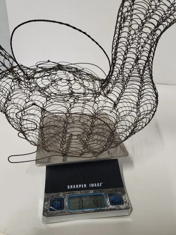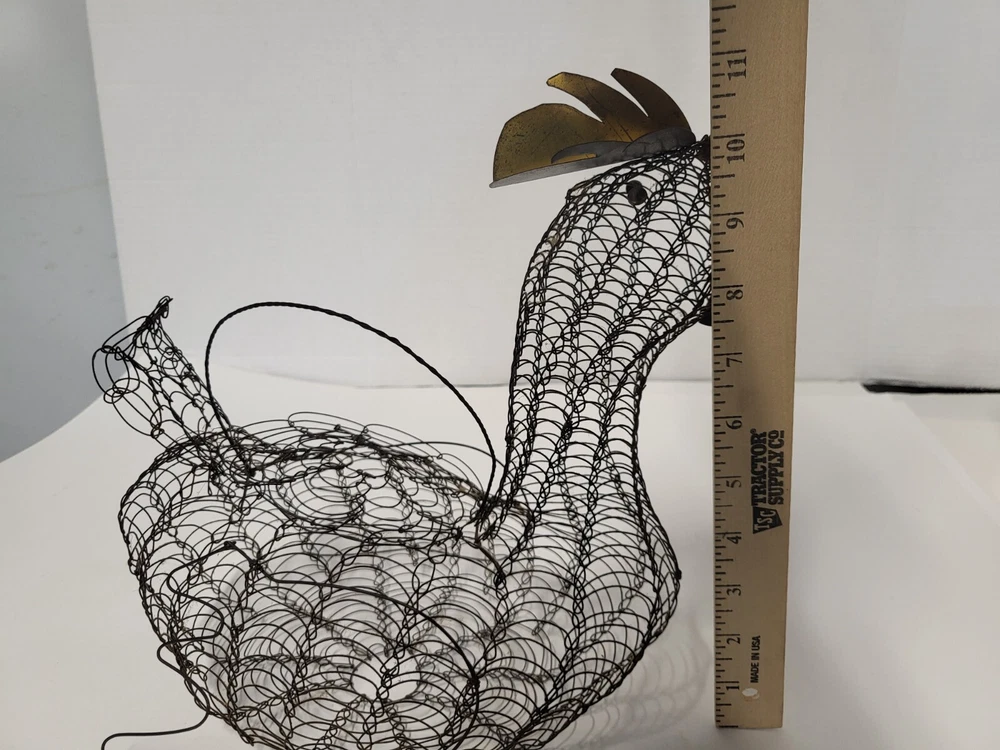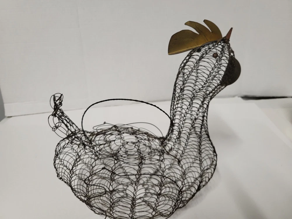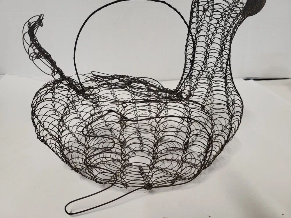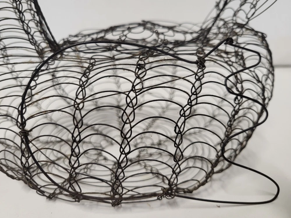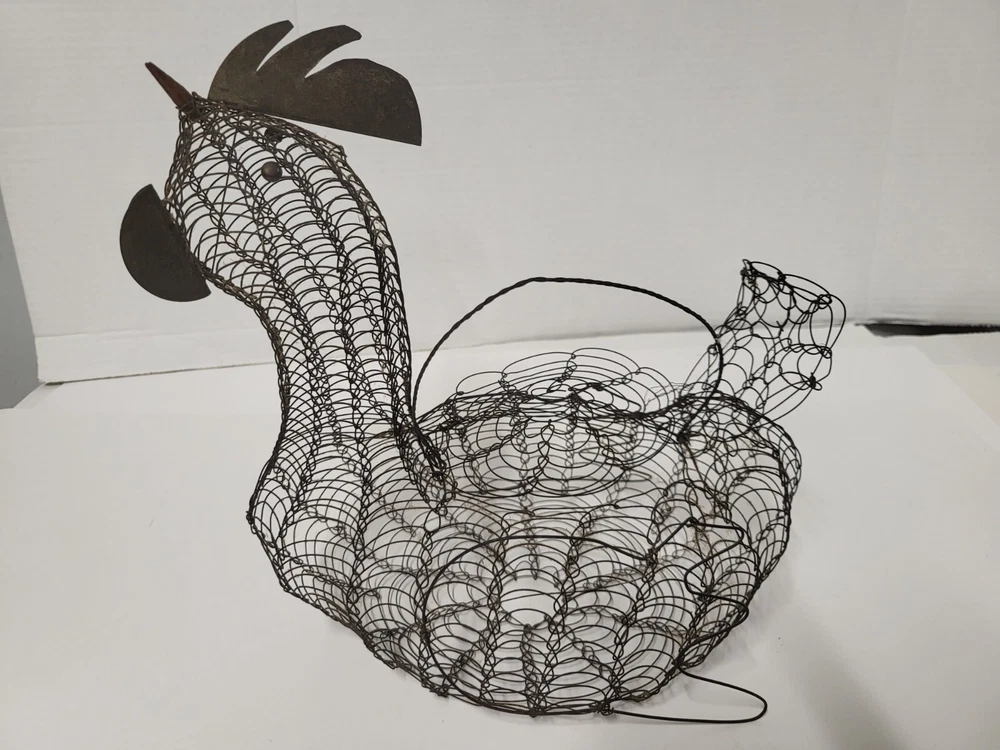 Size: Large Occasion: All Occasions Brand: Unbranded Shape: Bird Item Height: 11 in Department: Adults Finish: Metallic Country/Region of Manufacture: United States Original/Reproduction: Original Customized: No Style: French Country Color: Black Theme: Farm Animals Item Width: 6 in Material: Metal Item Weight: 5 oz Room: Dining Room, Kitchen Type: Wire Basket Handmade: Yes Features: With Handle Closure Type: Lid Estado del artículo: Usado UPC: Does not apply gtin13: Does not apply