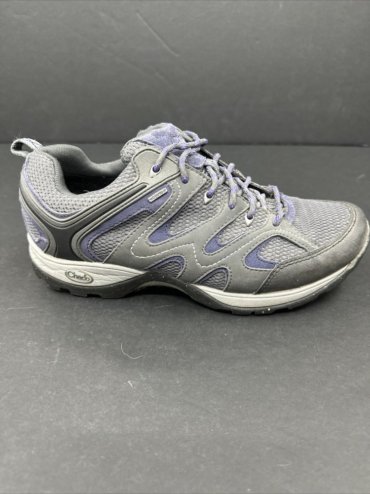 These Chaco Layna sneakers are a game-changer for hiking and outdoor adventures! The waterproof feature keeps my feet completely dry, even in wet conditions, while the suede upper and synthetic lining feel durable yet comfortable. The moderate cushioning and low-top design give great support without weighing me down. I love the stylish purple-gray color, and the fit is true to size—super comfy right out of the box. Perfect for trails, walks, or everyday wear. Highly recommend!