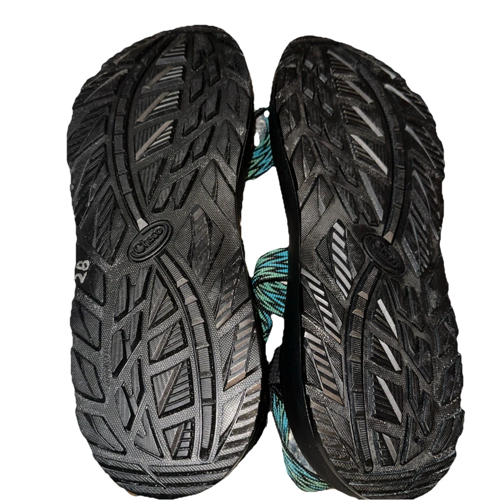 The Chaco JCH108685 Men's Strappy Green Black Blue Adjustable Hiking Sandals are a versatile and stylish option for outdoor activities and casual wear. Featuring a geometric blue pattern with the Chaco logo accent, these sandals are designed for comfort with arch support and an adjustable ankle strap. Made with a textile upper and a rubber outsole, they are perfect for summer, fall, and spring adventures. The strappy style and durable construction make these sandals a reliable choice for travel and active pursuits. Please check photos for more details. (Ref #14 green tub sandals/11)