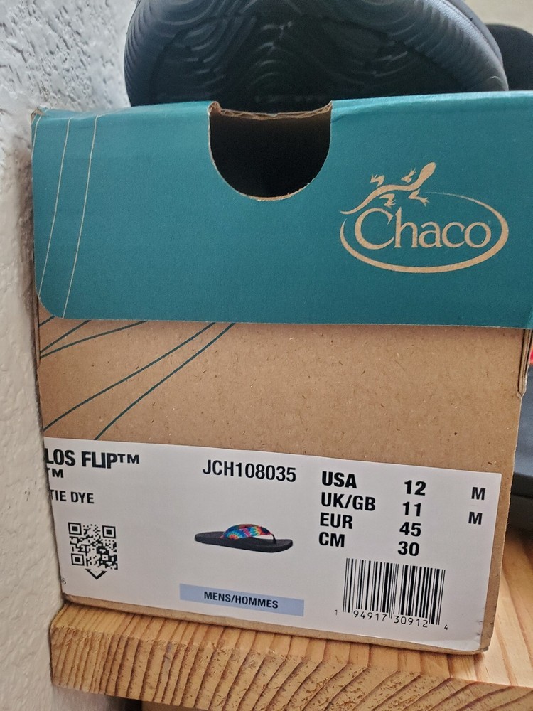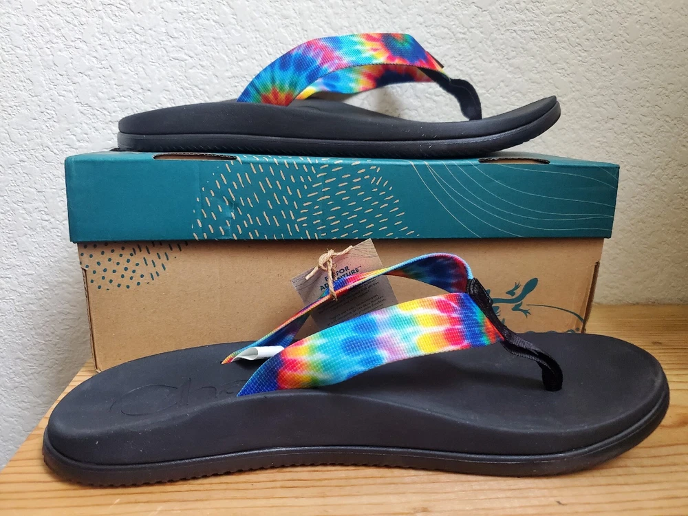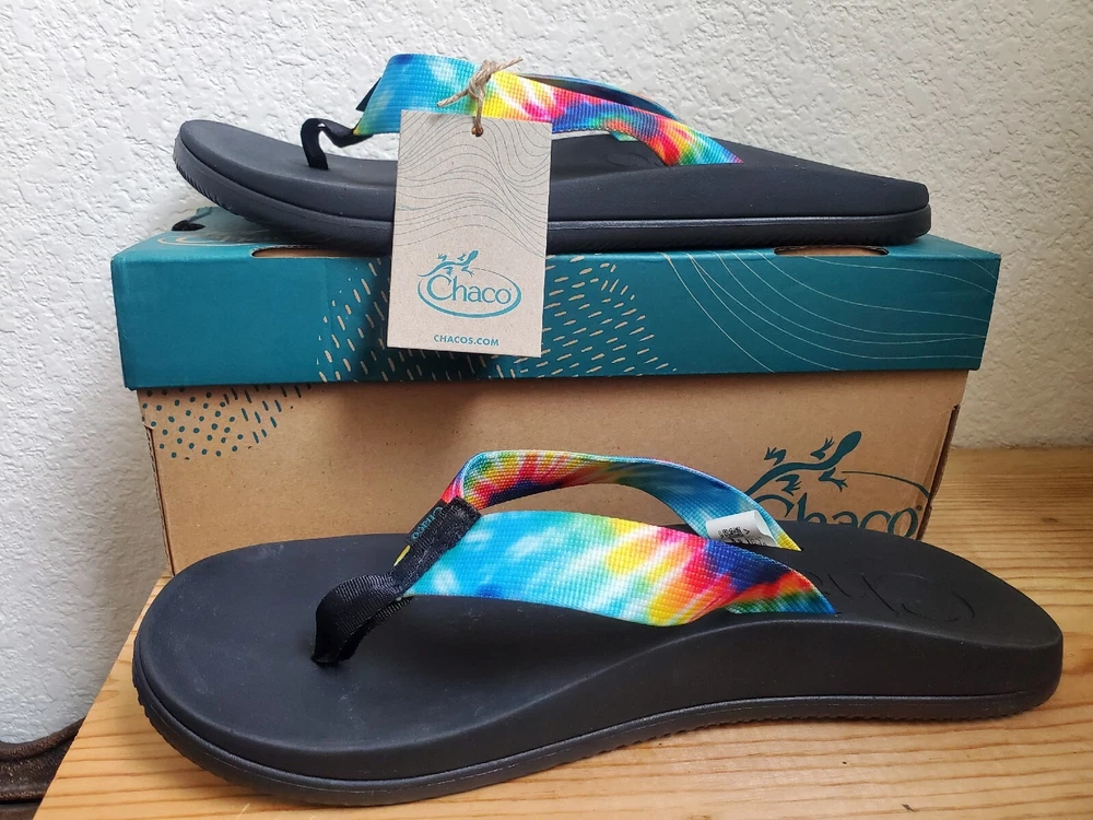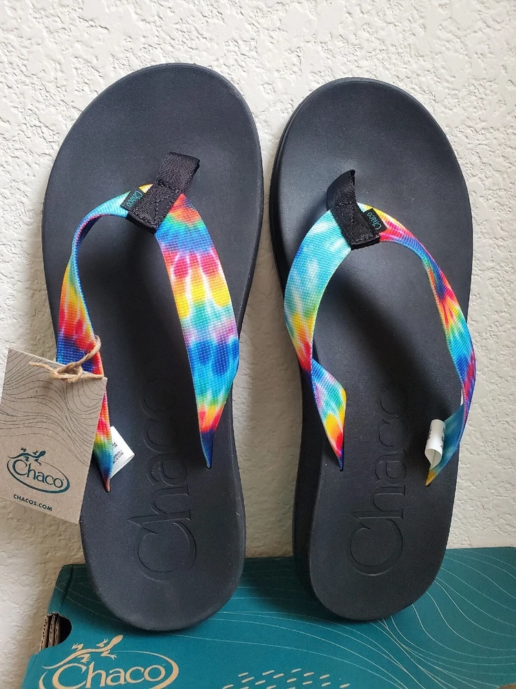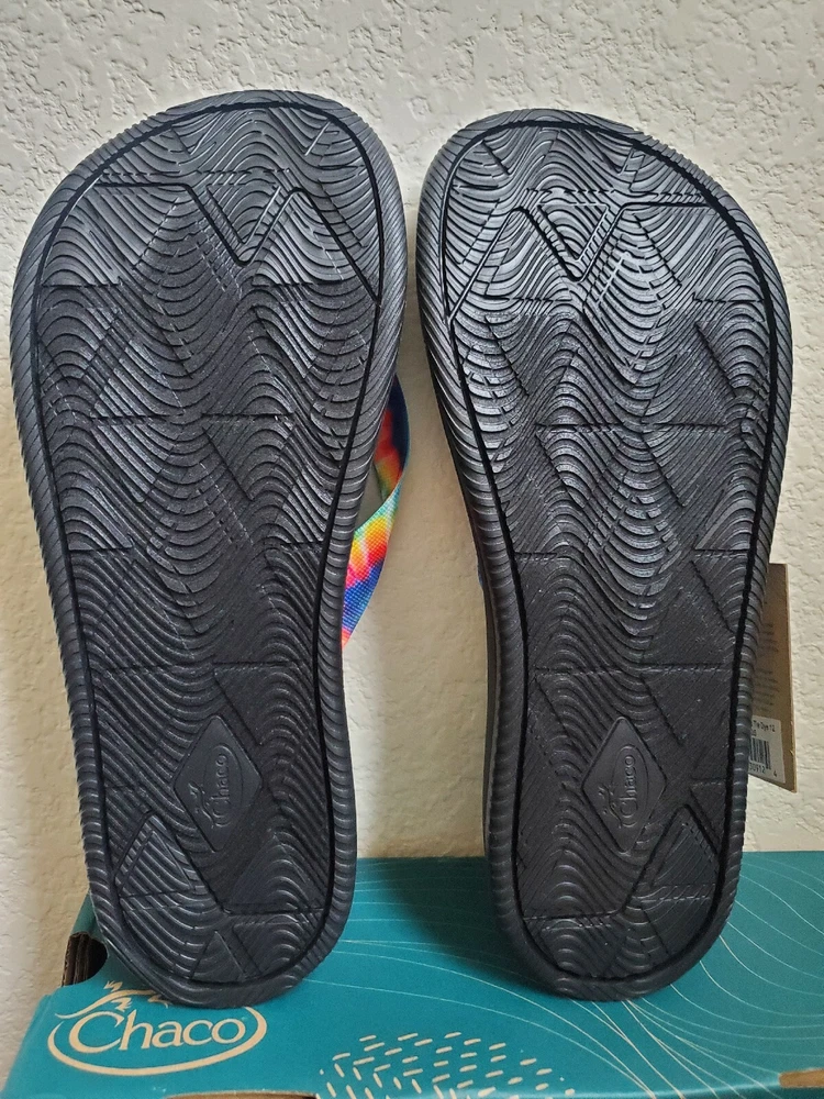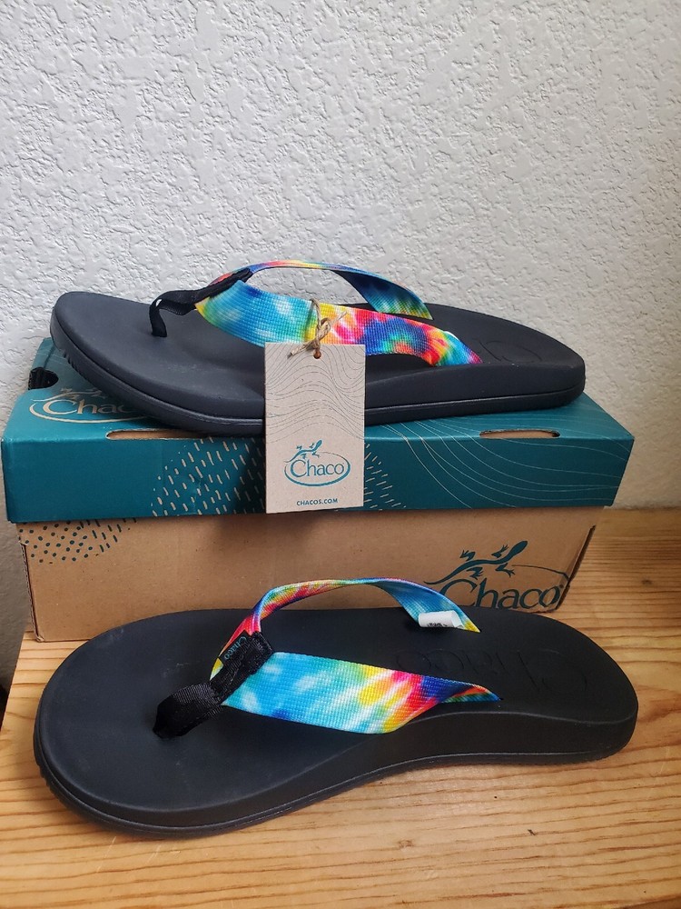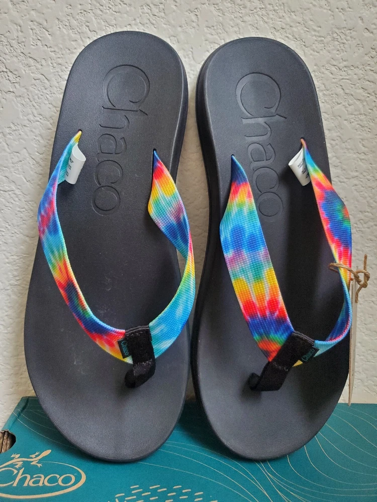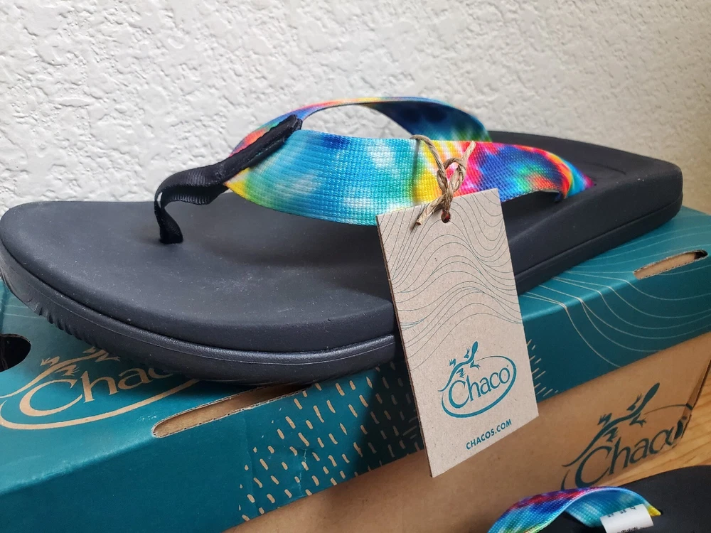 Chaco Sandals Men 12 Chillos Black Flip Flop Rainbow Shoes Tie Dye Boxed