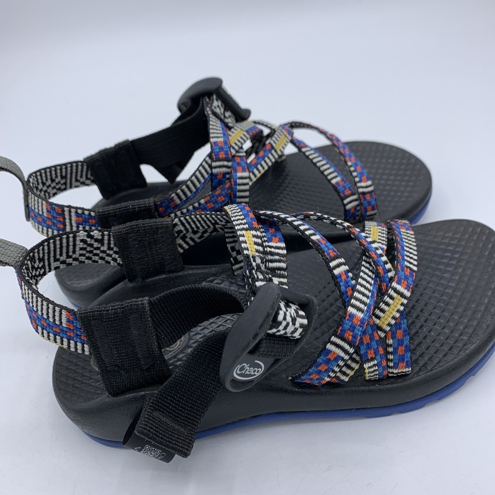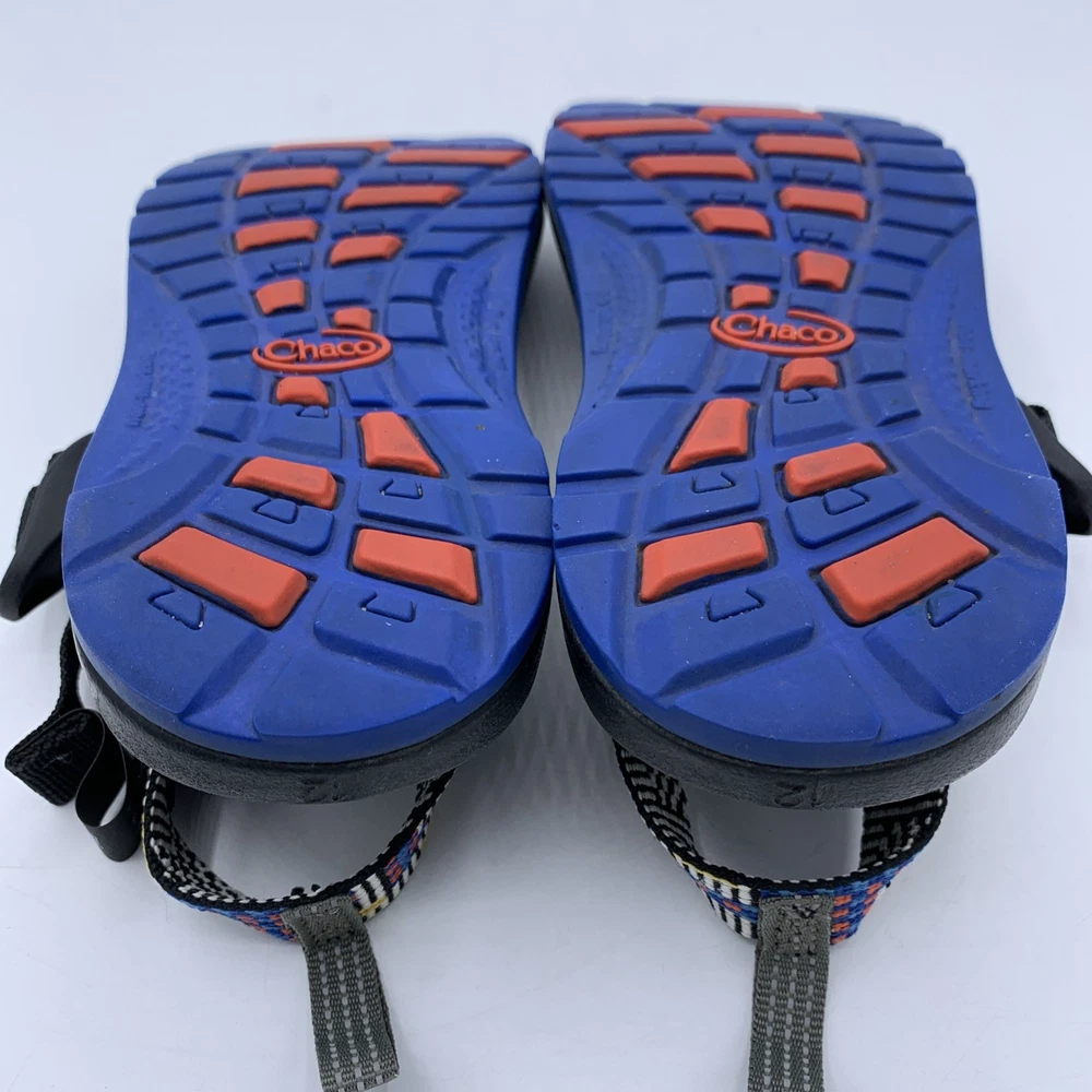 The Chaco ZX/1 Ecotread Youth 12 Mantel Cerulean Blue hiking and beach strappy sandals are perfect for active kids who love outdoor adventures. With an open toe design and adjustable buckle closure, these sandals offer comfort and support for all-day wear. The rubber outsole provides grip and stability, while the breathable synthetic fabric lining ensures dryness during water activities. Whether your child is walking, hiking, or engaging in water sports, these sandals are a reliable and stylish choice for summer, fall, or spring seasons. The colorful design and durable construction make them a versatile option for any outdoor enthusiast.