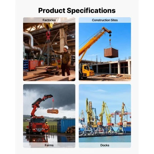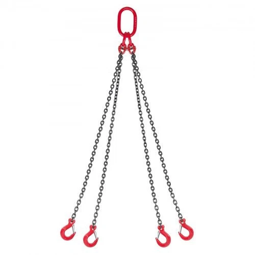 VEVOR Chain Sling, 1/4 in x 5 ft Lifting Chains with 4 Leg GrabHooks, Heavy Duty G80 Alloy Steel Lifting Sling, 6600LBS Capacity,Adjustable Engine Chain Hoist Lifts for Cargo Security Towing Lifting Ring Chain Hook with Security Latch Long-Lasting Durability Versatile Applications Quick & Easy Setup Max. Working Load (4-Leg Sling): 6600 lbs (2993 kg),Item ModelNumber: 6x1.5M-4,Chain Grade: G80,Single Chain Breaking Load: 12400lbs / 5600 kg,Product Dimensions: 70 x 11.6 x 2 in/1780 x 295 x 50mm,Chain Length: 5 ft / 150 cm,Net Weight: 17 lbs/7.7 kg,MainMaterial: Carbon Steel,Chain Diameter: 6.3 mm (1/4 in)