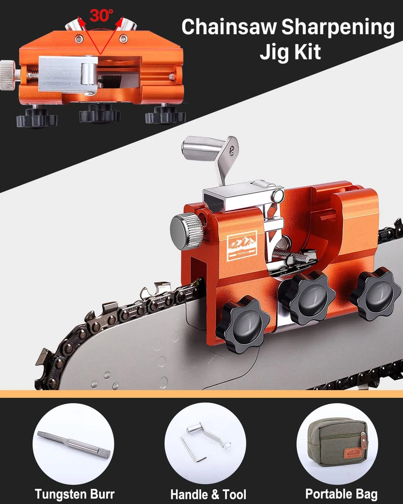 【Tungsten Carbide Cutter】 The set comes with 1 pcs 4.3mmTungsten Carbide Cutter for Medium/Small 11/64" (.325" ) ,also Compatible with Small 5/32″(3/8″ P or Picco,low profile) ,Medium 3/16″(.325″),Extra Small 1/8 (1/4″ ) Pitch Chains. 【Sturdy Material】Chainsaw chain sharpener is made of anodized aluminum fixture, which is not easy to rust. The tungsten steel grinding head is made of tungsten carbide, which is strong and durable, sharper than the hard steel file, and has a longer service life. 【Clever Design】This is the latest version of Chainsaw chain sharpening jig, Two fixed sharpening holes and a standard 30 °sharpening front angle, you can switch to use on both sides, can be applied to more complex environments and saving your time. 【Simple Installation】Chainsaw sharpener jig can be switched on both sides, just fix the clip on the rod, insert the burr into one of the guide sleeve, you can also switch to the other sleeve, turn the handle, only 3-5 seconds will be blunt chain back to sharp as new. 【Satisfactory Service】Chain Saw Shaperener tool package contains 1 brush, 1 pair of gloves. 1 manual, 1 tungsten carbide sharpening rod, a hexagonal wrench, if you have any questions about the product, please contact us promptly, we reply within 24 hours.