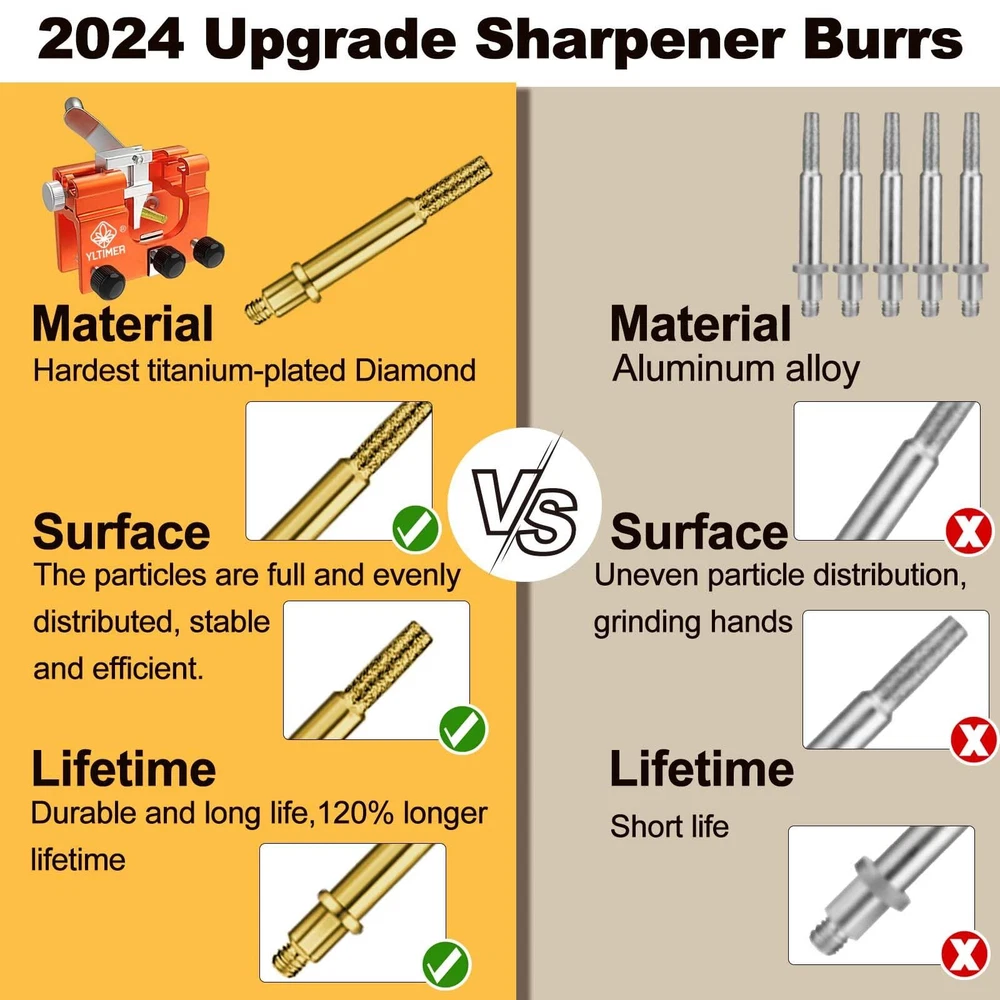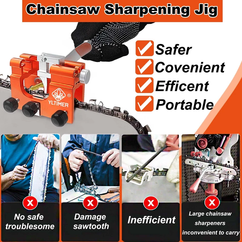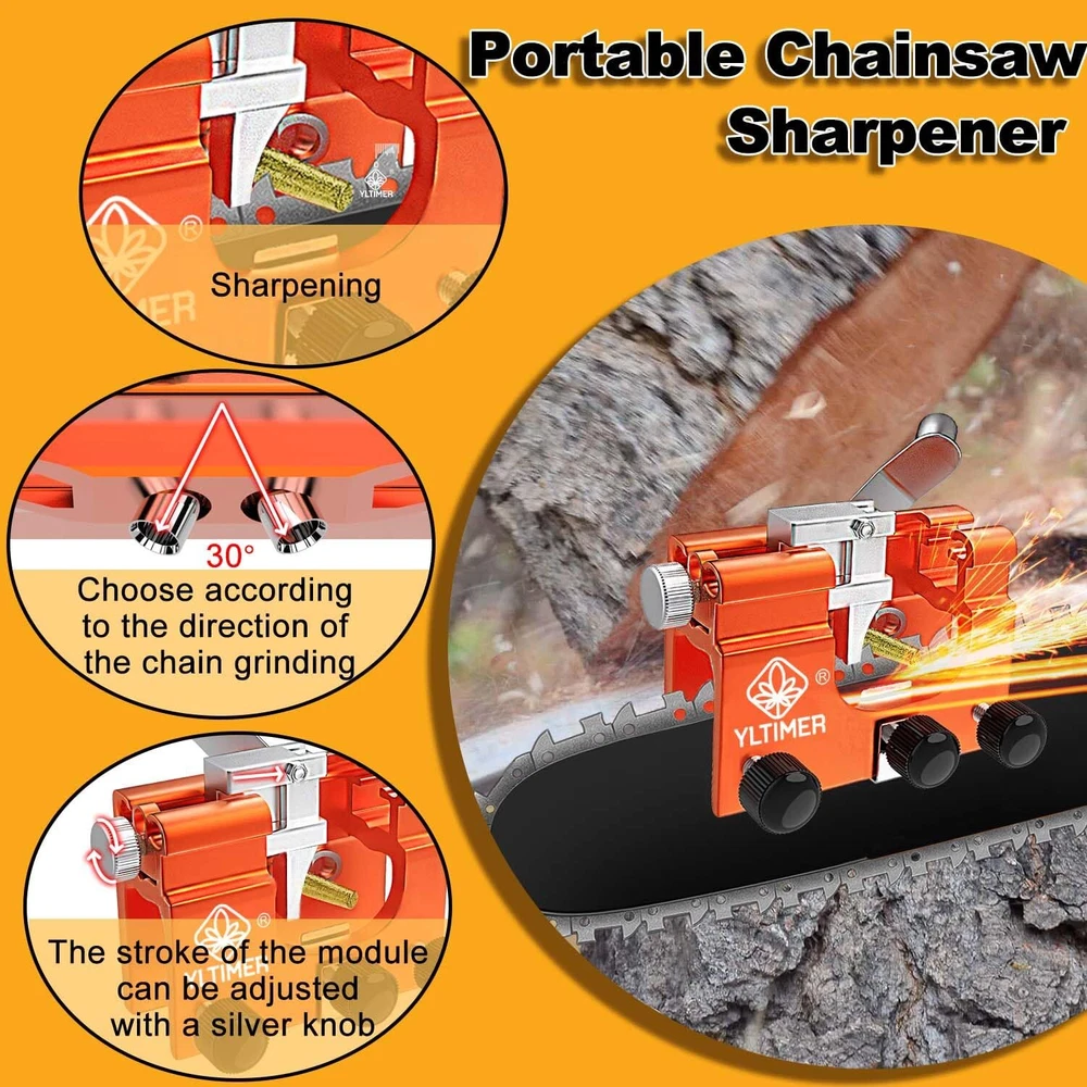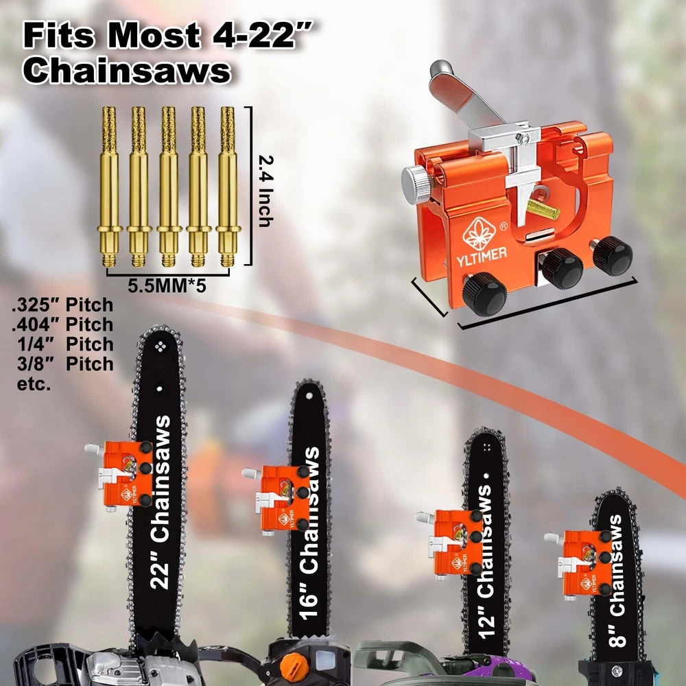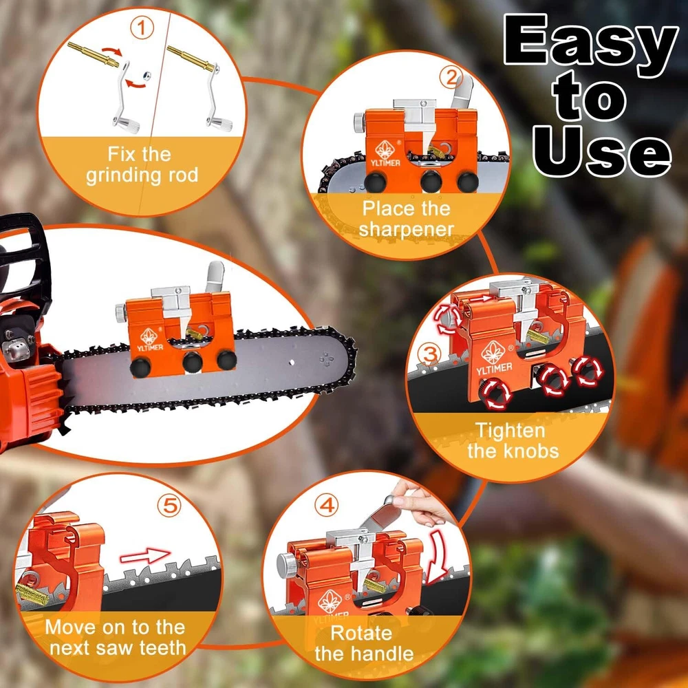 【Innovative Design Chainsaw Sharpener】Experience the versatility of our chain saw sharpener tool, which is compatible with chains of various sizes. Our chain saw sharpener features two fixed sharpening holes and a standard 30° sharpening angle. It is equipped with anodized aluminum clamps, making it suitable for use with electric chain sharpeners. The chain saw blade sharpener is compatible with a wide range of chainsaw sizes, including 4-22 inch chainsaws and electric chainsaws. 【Upgraded Sharpener Diamond Burs】 Our chainsaw chain sharpening jig kit has new design based on the old version, the position of the sharpening burrs fixed on the crank can be adjusted to make full use of the burrs. There are two different directions guide holes, which can improve the accuracy of the cutting angle. It comes with 5 grinding burrs, allowing you to replace them at any time. 【USER-FRIENDLY & EFFECTIVE CHAIN SHARPENER TOOL】Our universal Chainsaw Sharpener kit is as simple to use as a pencil sharpener. Just attach the clip to the rod, position the pawl over the teeth, insert the burr into the guide bush, and turn the handle. It only takes 3-5 seconds to sharpen the chainsaw. Experience the quick, easy, and precise way to sharpen your chainsaw, restoring it to its original efficiency. 【SECURE & PORTABLE CHAIN SHARPENING JIG】Designed with safety in mind, our hand-cranked chainsaw sharpener kit is lightweight and comes with a convenient storage bag, making it easy to carry and use outdoors. Additionally, each box includes a spare pair of gloves to protect your hands from potential harm. We also provide a cleaning brush to remove sawdust from chainsaws and debris from the chainsaw sharpener, effectively prolonging the lifespan of the chain. 【THE ULTIMATE CHOICE】Choose our Chain Saw Sharpening Jig set to maintain the sharpness of your chainsaw, saving you valuable time and effort on the job. With its beautifully packaged design, it also makes the perfect gift for any man and is an essential tool for lumberjacks and landscapers alike. We guarantee the quality of every chainsaw sharpener and provide friendly customer service.