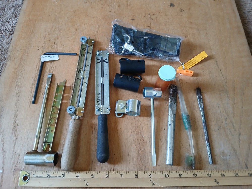 Chainsaw Sharpening Tools & Wrenches - Used.....look at pictures.....all of this $25 Stock# JKA1095 What you see is all that is included in the sale.......see photos for condition. This is a used part. It's not new. Look at pictures to be sure what you are buying. If you have any questions or need more pictures, we will gladly help you. Better to check before you buy. Buy Online & Save Gas. Notes on item condition: NOS: new old stock.....items listed as NOS or New Other are old stock parts that have been sitting on the shelf or been in storage for some time. The length of time an item has been in storage or on the shelf varies. These parts my be dusty, dirty, have surface rust, be scuffed or scratched. Used: Used parts are not in new condition. They have been taken off of various types of machines and equipment. They will be dirty, scratched up, scuffed, and / or have rust. If you are seeking new out of the box parts, these will not be what you are looking for. Fitment notes: Any fitment noted above is found online or in old parts books. If a part number is noted, the item is sold by part number only. Please make sure this is the item and / or part number you need before ordering. Payment: Payment is via Paypal. PA residents must pay 6% sales tax. Shipping: Items that are listed as free shipping will ship free through the carrier of our choice, USPS, Fedex, Fedex Smart Post.....items that have shipping costs shown are not free shipping.....Those items, the shipping costs are the responsibility of the buyer. International Shipping: We do have some of our items listed through Ebay's global shipping program. All international shipping costs shown are set by Ebay. We do not have any control over the costs, and have no way to change them. If you're interested in an item that we do not have international shipping on yet, please message us and we will add it to the listing. Return: Our items are sold as is. If you have an issue with an item, please contact us and we'll do what we can to work with you. If we accept a return, buyer pays return shipping and a 20% re-stocking fee. The shipping we paid to ship the item out is non-refundable. We have been in business for over 40 years. We have a retail location where all items can be picked up if you prefer that to shipping. Our hours are Mon-Fri 9-5 EST and Sat 9-4. We try to answer Ebay questions as quick as we can, but there are times when the store is busy, that it may take us a day or 2 to get back to you. We have handled multiple dealerships over the years and have a lot of older parts in stock. If you're looking for something we don't have listed, please don't hesitate to call us. We may just have the item in stock. (Cub Cadet, Troy Bilt, Kohler, Briggs, Tecumseh, Polaris, Artic Cat, Suzuki, Wheel Horse, Bolens, Mitsubisi Satoh, Murray, Stihl, Husqvarna, [Car parts: tons of classic Porsche 944 parts!]