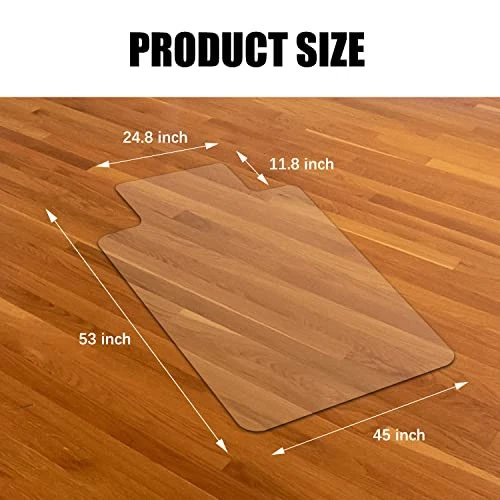 Return Policy Fast Delivery Trusted seller Chair Mat, Rolling Chair Mat for Hardwood Floor, 45" X 53" Transparent PVC Home Office Floor Protector Mat (45" X 53" with Lip) Product Description Designed for HARD FLOOR surfaces only. No gripper. Transparent surface, anti-slide coating on the underside which is designed to keep them firmly in place while in use. Please put the smooth side facing down, the rough side is up. No Phthalate, No Toxins, No Cadmium, No Tin and No Lead. keep a healthy indoor environment while give your floor and furniture the best protection. This PVC chair mat is ergonomically designed to provide added ease of movement, it's very flexible, which proven to reduce leg fatigue by taking the strain off your legs. you can choose the Rectangle one or the one with lip as you like. Effectively helps to prevent damage to hard flooring caused by your office chair casters or wheels. Under standard use will not crack, curl, break, scratch or discolor. Multipurpose Use: ChairMat, Wood Floor protector,Computer/Office Mat. Suitable for hard floors including vinyl, stone, tile, wood, laminate and concrete. Not recommended for carpet, please see our carpet mat if you need. Shipping Returns Payment Shipping Shipping is FREE to all addresses other than APO/PO boxes in the lower 48 states. All our stock ships from US-based warehouses. Shipped via USPS or UPS (depending on location and package weight) Unless stated otherwise, all orders will ship within 24-72 hours of your payment being processed. Check our feedback to see the great reviews of FAST shipping we offer. Returns Seller does not accept returns Payment We currently accept payment via eBay managed payments only. Once payment is cleared, we will dispatch your shipment within 1-3 business days. Please refer to the "Shipping" tab for more information regarding shipping speed to your destination.