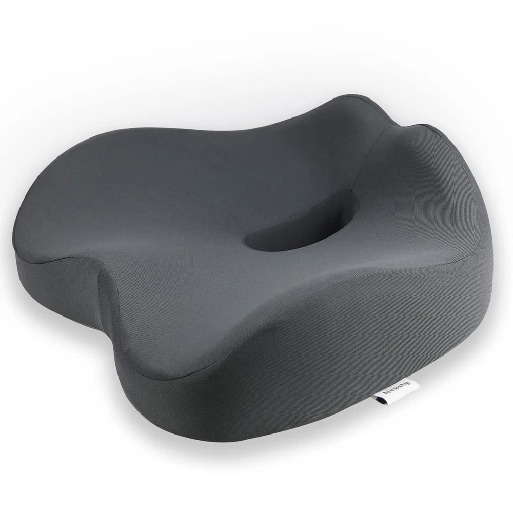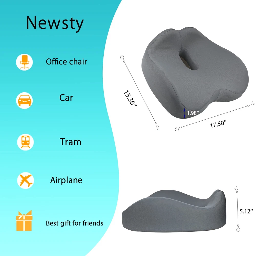 【Your most concerned】: Made with pure memory foam and cotton, our pressure relief seat cushion is scientifically contoured to cradle your thighs & hip, help you sit upright up on any chair and provides additional support you need to maintain good posture. 【Good partner when sitting】: Measuring 17.5"x 15.36"x 5", this enlarged thick memory foam seat cushion has excellent weight support, the slow rebound memory foam prevents it from flattening. With a removable and breathable cover, you will not feel hot and sticky, which guarantees that you will be comfortable even on the warmest days. 【Functional Tailbone Pain Relief Cushion】: This coccyx cushion for tailbone pain (the 5th version)has been developed after stringent testing, aiming to fit human pelvis perfectly and add instant comfort to relieve muscle pain,legs numbness and legs edema caused by long sitting hours. Use it as a car seat cushion, desk chair cushion, wheelchair cushion, gaming chair butt pillow. A thoughtful gift for parents, friends, teachers, colleagues. 【Cost-effective seat cushion】 We spend most of our budget in materials and workmanship, using plain packaging. Choosing the most high quality memory foam and cotton to produce this cushion, if you are a fan of cushions, you can tell the difference once you get it. 【About after-sales service】: We are trying our best to offer customers the best product and service, and your advice matters a lot. So please feel free to contact us if you have any complaint or suggestion.