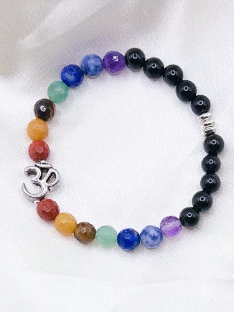 Enhance your spiritual journey with this beautiful Chakra Bracelet featuring a natural round-shaped Black Onyx stone. The bracelet is handcrafted with care and attention to detail, making it a perfect gift for any occasion. The charm and beaded style of the bracelet is perfect for those who love yoga and spiritual healing. The bracelet features a stunning silver plated "Om" charm, making it a unique and special piece. The bracelet is perfect for those who want to add a touch of spirituality to their daily life. With its natural and handmade nature, this Chakra Bracelet is a must-have for anyone who wants to explore the world of yoga and spiritual healing.