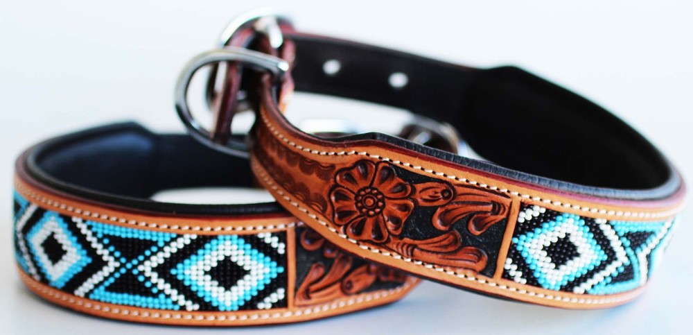 Description Tack Market. Top Brand and Quality products at rock bottom prices. Made from 100% genuine rawhide leather Collar is all hand made, including any carving, tooling, and painting. This strong and durable heavy duty collar features a double stitched smooth leather padding for comfort. X-Small/Small collars are 1" wide Medium/Large collars are 1 1/2" wide Sizing: X-SMALL: 9" - 13" SMALL: 13'' - 17'' MEDIUM: 17�� - 21'' LARGE: 21'' - 25'' Shipping Items will be shipped within 24 hours of payment received during business days. We observe major US holidays. We use United State Postal Service and UPS Ground as our shipping carrier. Free shipping is only within US with exception of Alaska, Hawaii, PR. We do offer expedited shipping. We ship worldwide. We prefer shipping with UPS for Canada. Physical address is required for large items such as saddle, blankets, saddle bags. We do offer shipping discount for multiple items. Please do not pay each item separately if you want to get combine shipping rate. Combined shipping rate for multiple items in auction format $5.00 off on each additional Item. Payment We accept PayPal payment or major credit cards. Payment must be received within 5 days after auction ends. Texas residents pay 8.25% sales tax. Returns We're happy to exchange your item or refund your money If you are not completely satisfied, you may return your unused item within 30 days from your date of purchase for refund. Return shipping is at the customer's expense. 20% restocking fee will be deducted from original cost. Refund will be madeupon receipt of the item. Shipping cost for an exchange of size or an item less than 20lbs is $15. Send return item with a copy of packing slip.