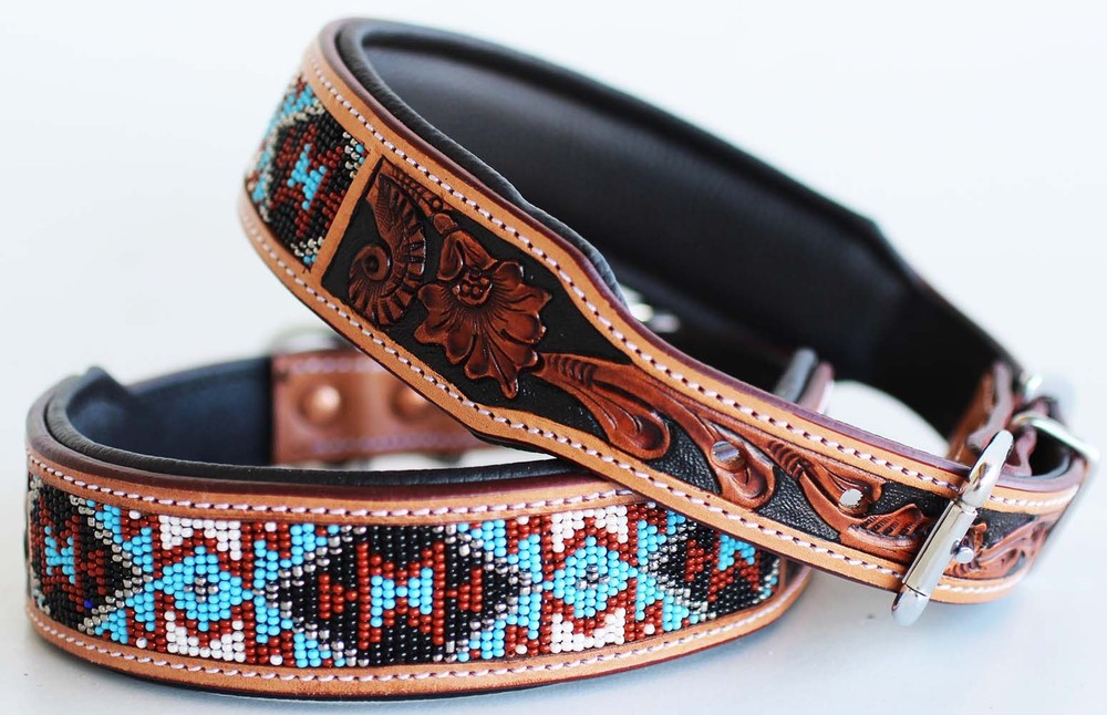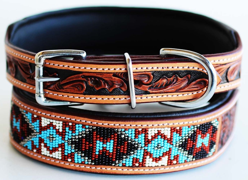 Description Tack Market. Top Brand and Quality products at rock bottom prices. Made from 100% genuine rawhide leather Collar is all hand made, including any carving, tooling, and painting. This strong and durable heavy duty collar features a double stitched smooth leather padding for comfort. X-Small/Small collars are 1" wide Medium/Large collars are 1 1/2" wide Sizing: X-SMALL: 9" - 13" SMALL: 13'' - 17'' MEDIUM: 17�� - 21'' LARGE: 21'' - 25'' Shipping Items will be shipped within 24 hours of payment received during business days. We observe major US holidays. We use United State Postal Service and UPS Ground as our shipping carrier. Free shipping is only within US with exception of Alaska, Hawaii, PR. We do offer expedited shipping. We ship worldwide. We prefer shipping with UPS for Canada. Physical address is required for large items such as saddle, blankets, saddle bags. We do offer shipping discount for multiple items. Please do not pay each item separately if you want to get combine shipping rate. Combined shipping rate for multiple items in auction format $5.00 off on each additional Item. Payment We accept PayPal payment or major credit cards. Payment must be received within 5 days after auction ends. Texas residents pay 8.25% sales tax. Returns We're happy to exchange your item or refund your money If you are not completely satisfied, you may return your unused item within 30 days from your date of purchase for refund. Return shipping is at the customer's expense. 20% restocking fee will be deducted from original cost. Refund will be madeupon receipt of the item. Shipping cost for an exchange of size or an item less than 20lbs is $15. Send return item with a copy of packing slip.