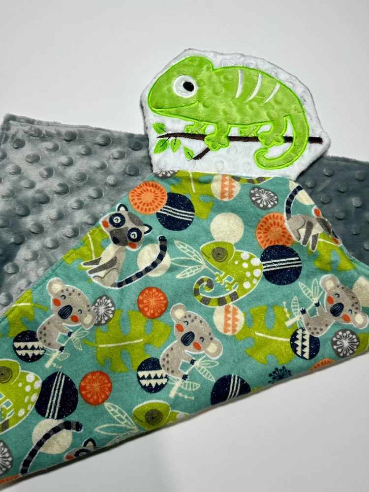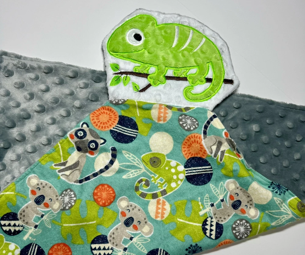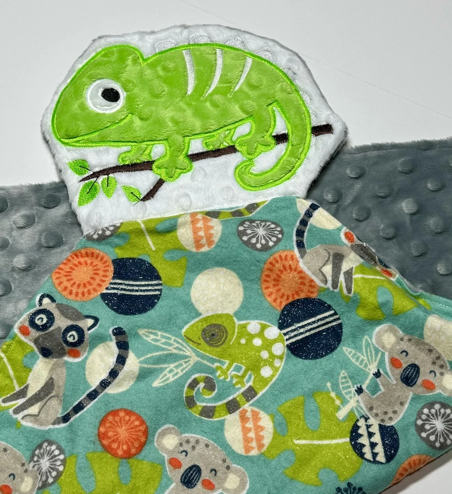 Chameleon Lizard Baby Lovey Security Blanket Appliquéd Flannel Minky Baby Gift