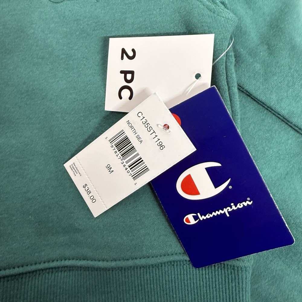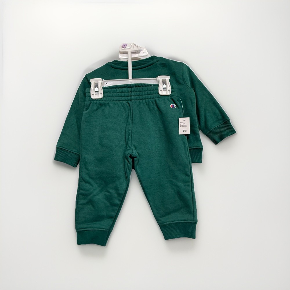 This is a new sweatsuit in size 9months. The color is North Sea Green. * this outfit is new with tags but has some creases in fabric due to storage on hanger . Please see last 2 photos. *shipped without hanger (H18)