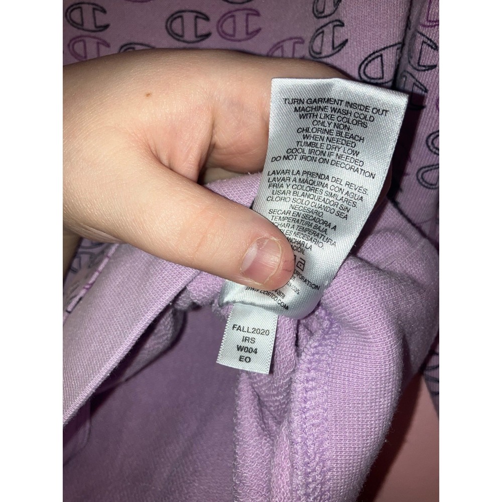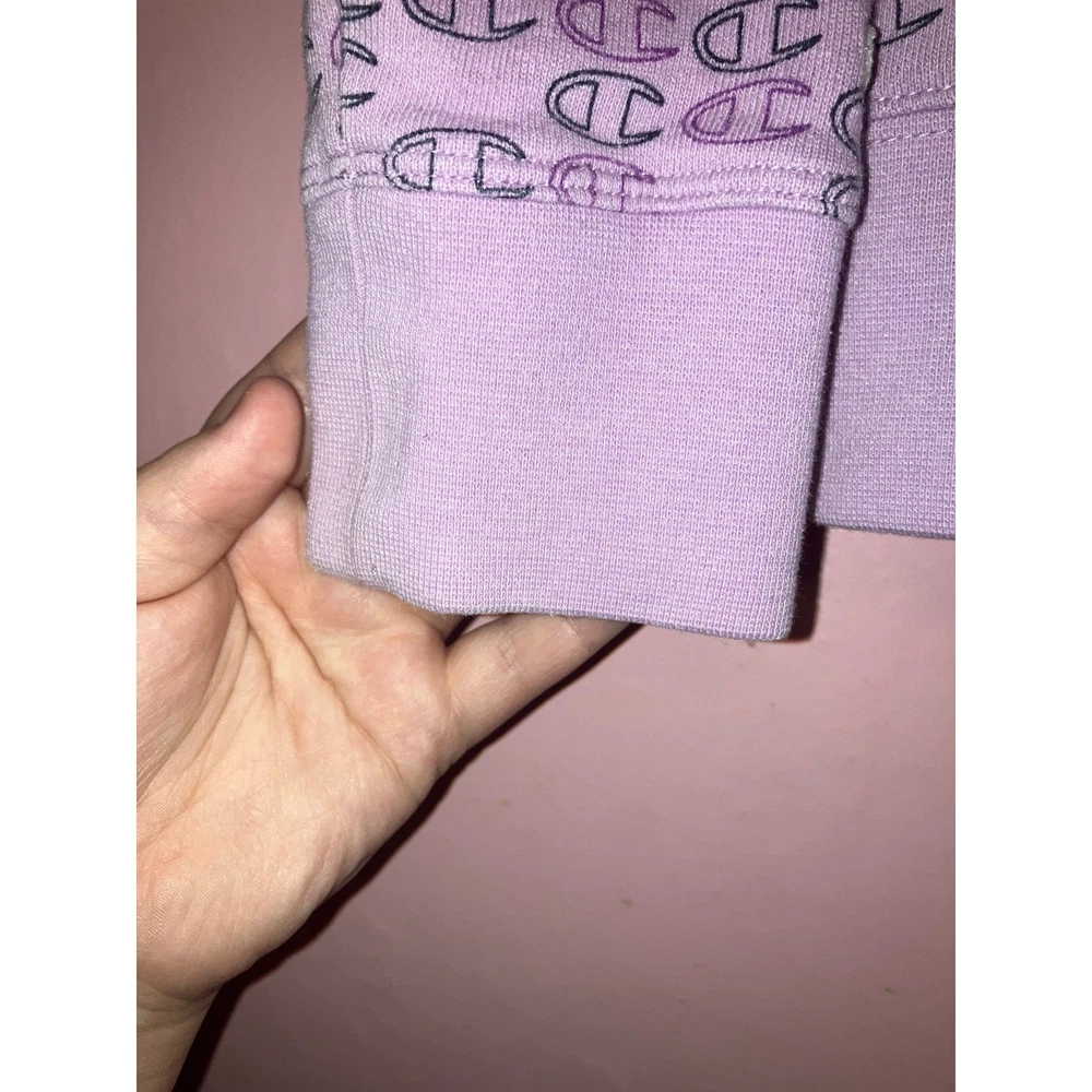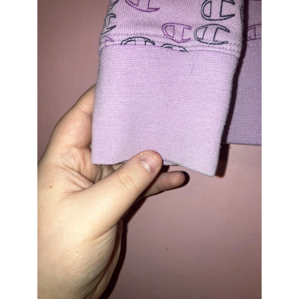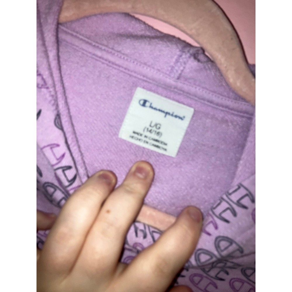 Brand: Champion Size: Youth Large (14/16) Color: Lavender Condition: In great used condition Measurements: Armpit to armpit 17 inches, Stretches to 20 inches, Length 21 inches Materials: • Body: 60% Cotton, 40% Polyester • Rib: 58% Cotton, 38% Polyester, 4% Elastane Made in: Cambodia Washing Instructions: Machine wash cold, tumble dry low Style: Soft Champion hoodie with an allover logo print in a lavender shade. Cozy fleece interior with ribbed cuffs and hem—great for everyday wear, school, or lounging. Offers welcome! Bundle to save! Tags: champion hoodie, youth champion, lavender hoodie, logo hoodie, kids sweatshirt, athleisure, casual wear Smoke-free, cat-friendly home.