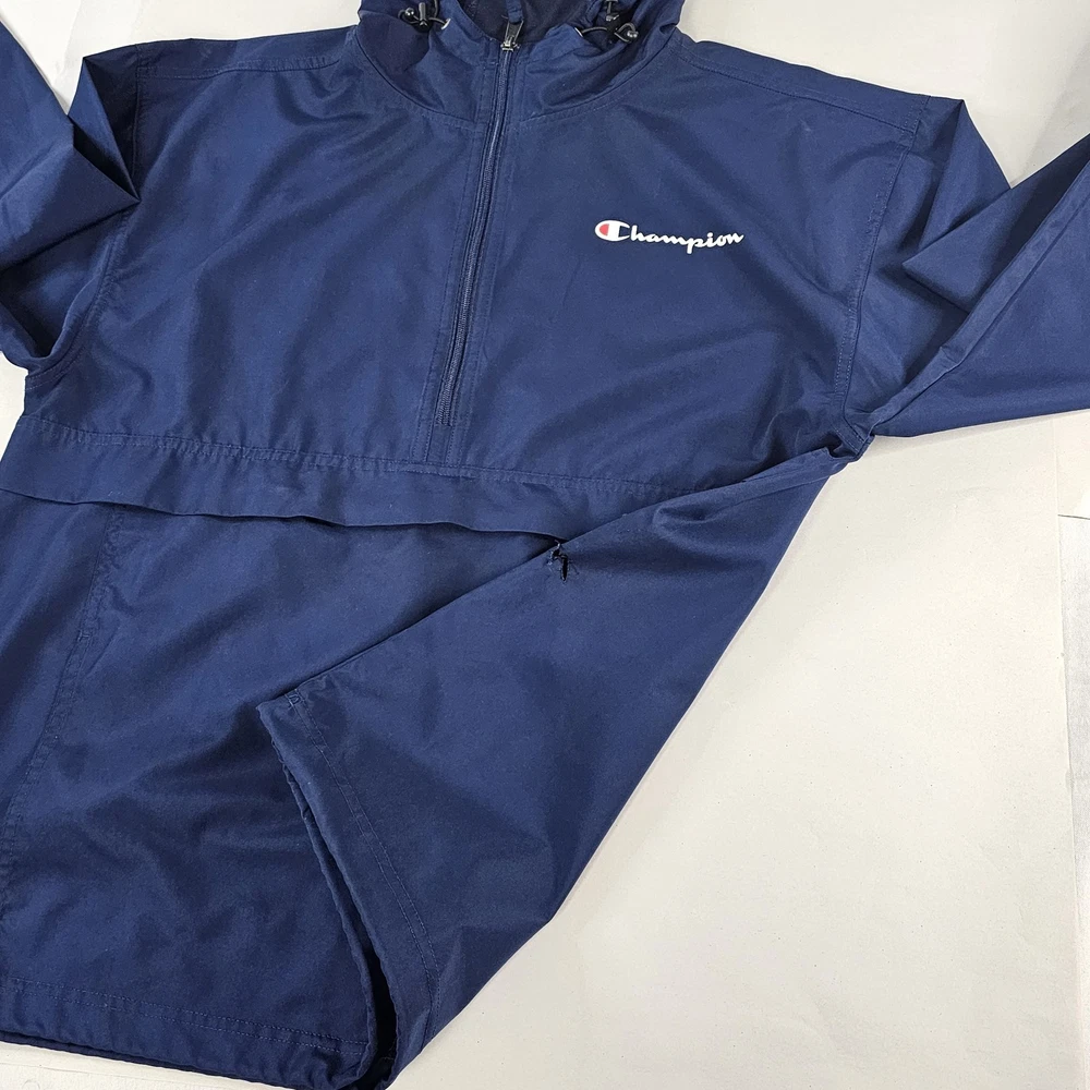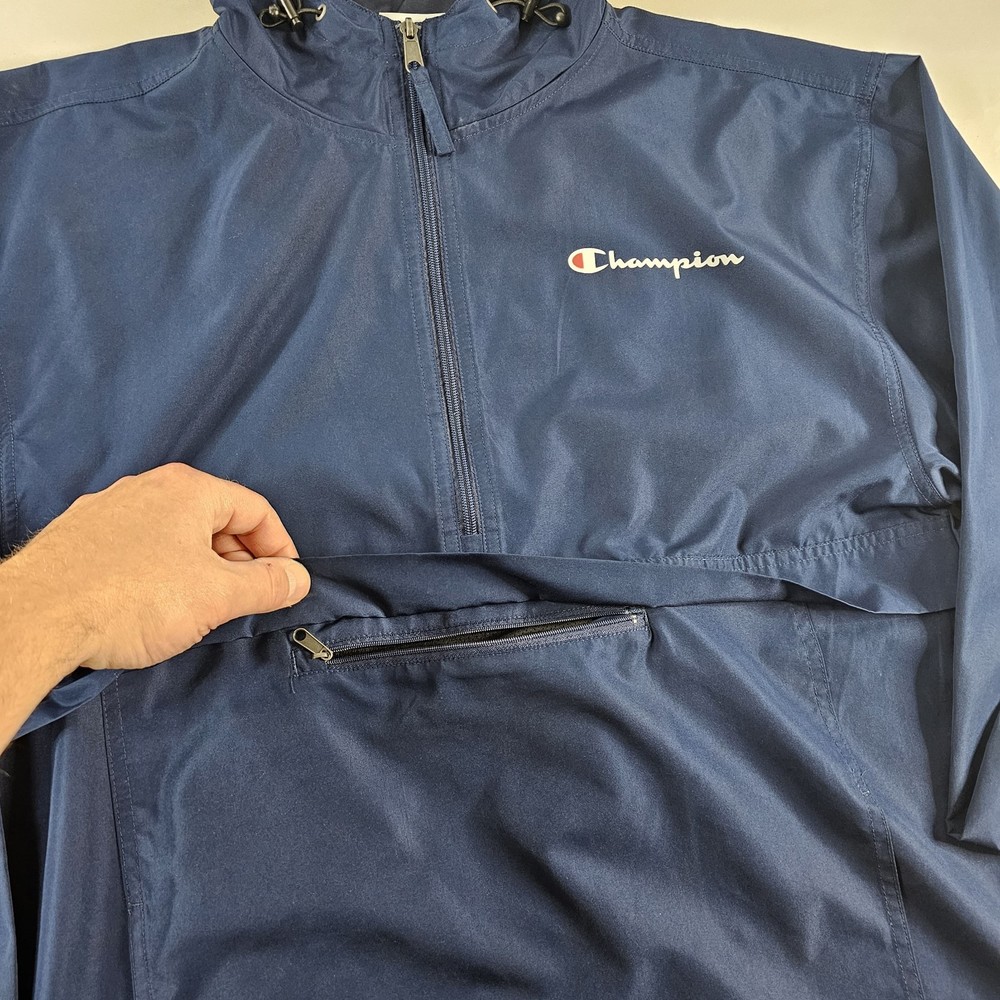Champion Stadium Packable Half Zip Windbreaker Jacket Blue Mens Sz Medium. Has Small Hole On The Left Directly On The Side. Pretty Hidden By The Left Sleeve, Shown In Last Few Pictures. Other Then That The Jacket Is In Great Condition. Please Check All Pictures Closely For A More Detailed Visual Description Of Condition And Measurements. Ships Out Free Within One Business Day.