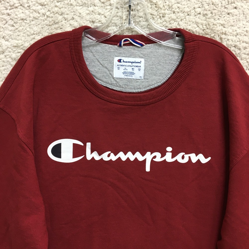 Champion Sweatshirt 2XL Adult Red Crewneck Long Sleeve Pullover Casual Mens XXL WE SHIP ITEMS DAILY, SO EXPECT TO RECEIVE YOUR ITEMS FAST. YES, WE COMBINE SHIPPING !!! Measurements: Chest (pit to pit) / Length (collar to end) Measured flat in inches. Please, See Pictures for Measurements. PLEASE NOTE : Please look at the measurements before purchasing. If you are not sure about the size, flat lay a similar item of your own and measure that item to compare with our measurements. We do accept returns within 60 days . Please note, the item must be returned in the exact same condition as it was received. The Seller pays return shipping if the item does not fit. We request that you select "Item does not fit" when returning an item that does not fit. Thank You! Don't forget to check out Our Other listings. Thanks and have a great day.