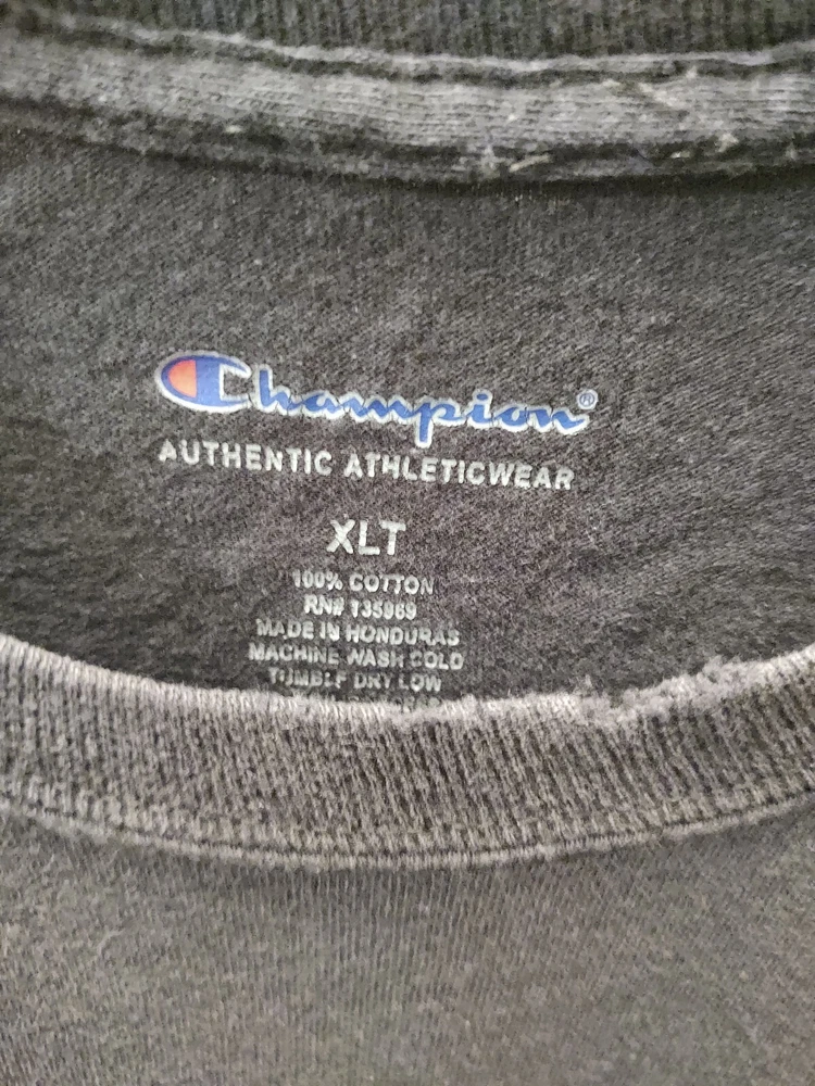 Country/Region of Manufacture:HondurasAccents:LogoNeckline:Crew NeckSeason:Fall, Spring, Summer, WinterDepartment:MenFabric Type:KnitModel:Does not applySleeve Length:Short SleeveTheme:RetroGarment Care:Machine WashableSize:XLTSize Type:RegularColor:BlackFit:RegularPersonalize:NoHandmade:NoPattern:Does not applyType:T-Shirtgtin13:Does not applyYear Manufactured:2010-2019MPN:Does not applyVintage:NoBrand:ChampionMaterial:CottonFeatures:All SeasonsUPC:Does not apply