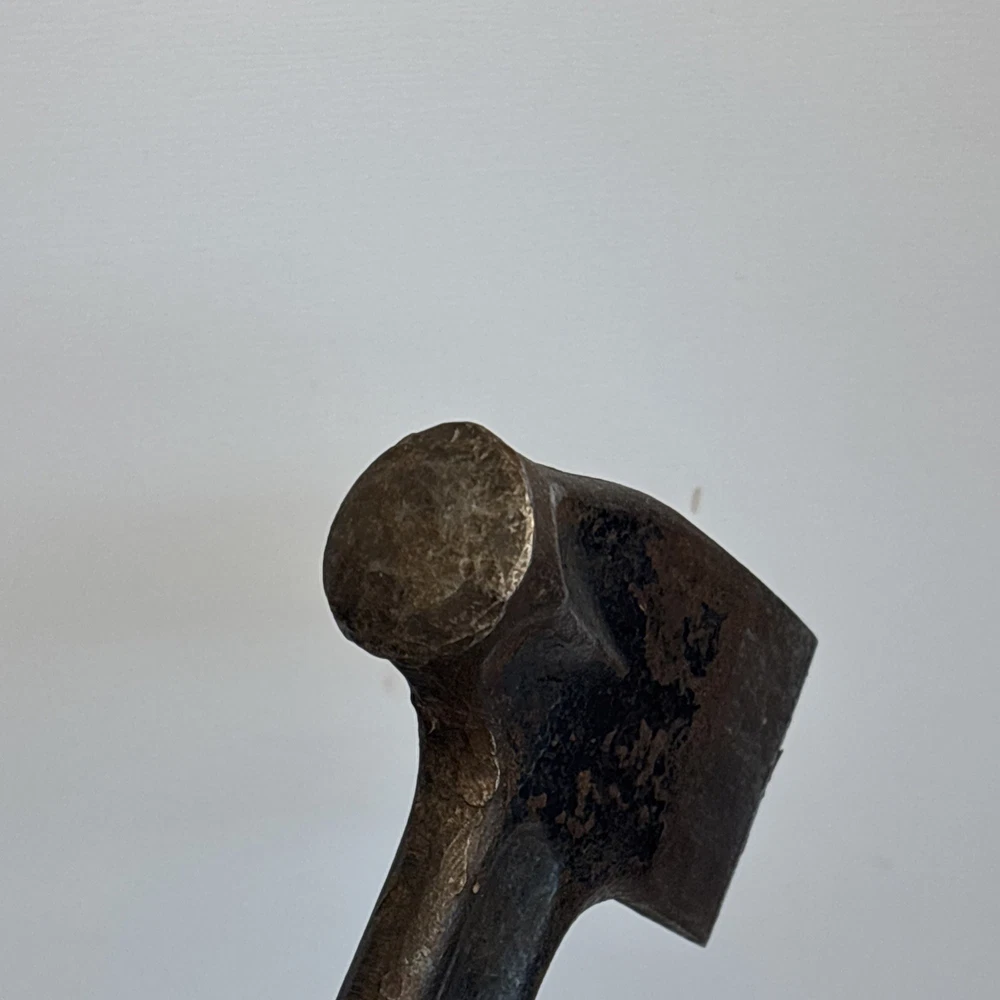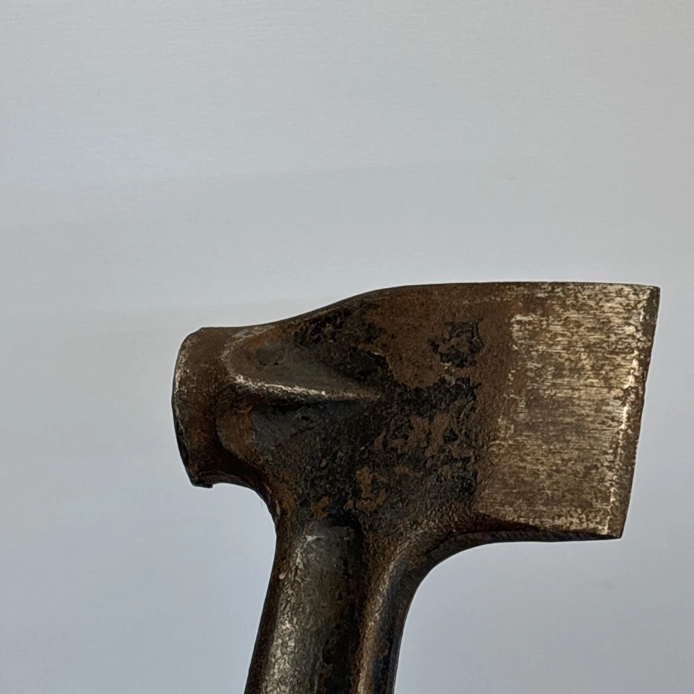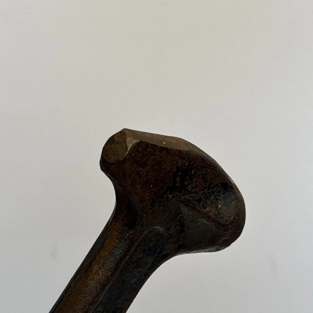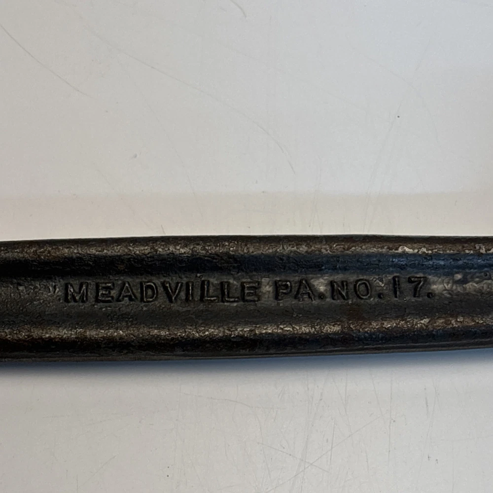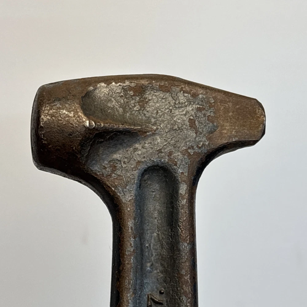 Vintage Champion-DeArment No. 17 combination crate and nail clinching tool made in Meadville, Pennsylvania, USA. One-piece forged steel construction with integral handle between both working ends. One end features an approximately 1½ inch wide chisel/axe-style cutting blade with opposing hammer face. The opposite end includes a larger hammer face with a smaller opposing striking surface. Designed for crate opening, nail driving, and nail clinching in warehouse and packing applications. Clearly marked “Champion-DeArment” and “No. 17.” See photos for full details and measurements. Condition Used vintage condition with surface rust, oxidation, and wear from age and use. Cutting edge shows wear but no cracks observed. Hammer faces show typical striking marks. Structurally solid. See photos for complete condition details.